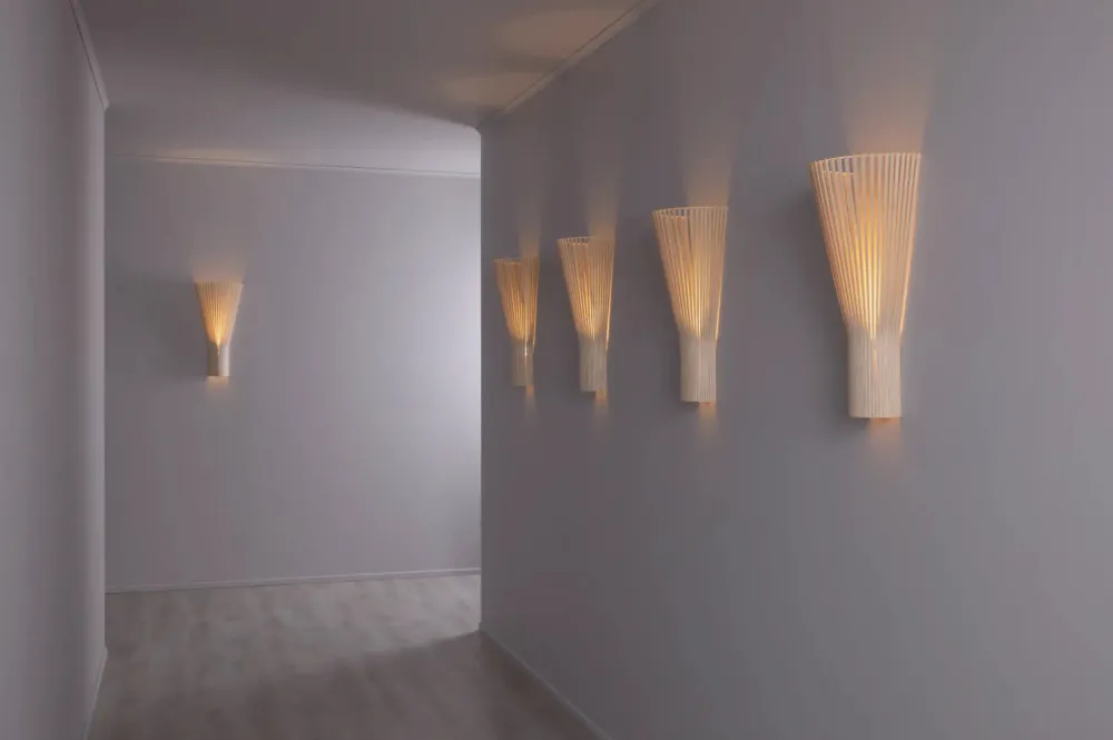 Cette collection emblématique est déclinée en plusieurs modèles (suspension, applique murale, lampe à poser et lampadaire) que vous pourrez associer pour créer un ensemble harmonieux et raffiné. La face interne des lamelles est toujours en bouleau naturel. La lumière est dirigée vers le bas et s’échappe sur les côtés entre les lamelles. Ampoule LED incluse.