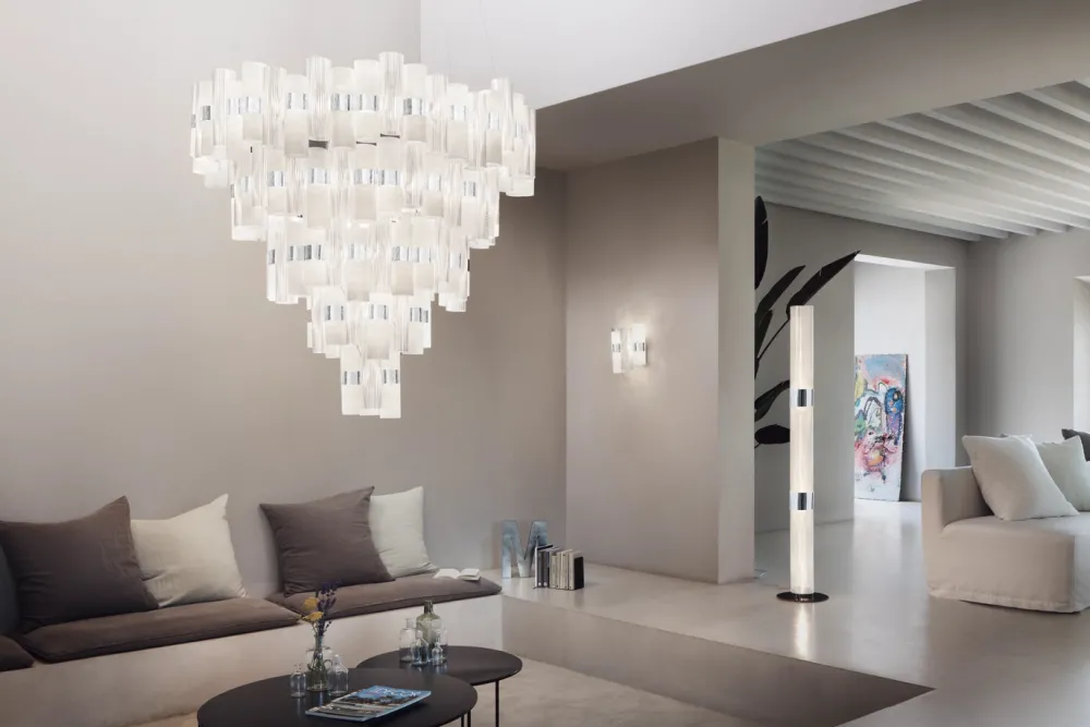 La Lollo est un lampadaire design de Slamp conçu sous la forme d’un cylindre fabriqué à partir des matériaux spécialement développés et brevetés par Slamp Christalflex® et Lentiflex®. Ces matériaux ressemblent au verre de Murano soufflé à la bouche, mais contrairement au verre, ils sont très légers et surtout incassables. Les matériaux présentent des effets d’éclairage uniques. Par exemple, le Lentiflex® a pour effet de changer la couleur de l’eau en fonction de l’angle de vue. Le design de la série de lampes La Lollo vient de Lorenza Bozzoli et est un hommage aux années 50. Elle travaille avec Slamp depuis 2015 et a conçu la collection de lampes La Lollo pour le fabricant italien.