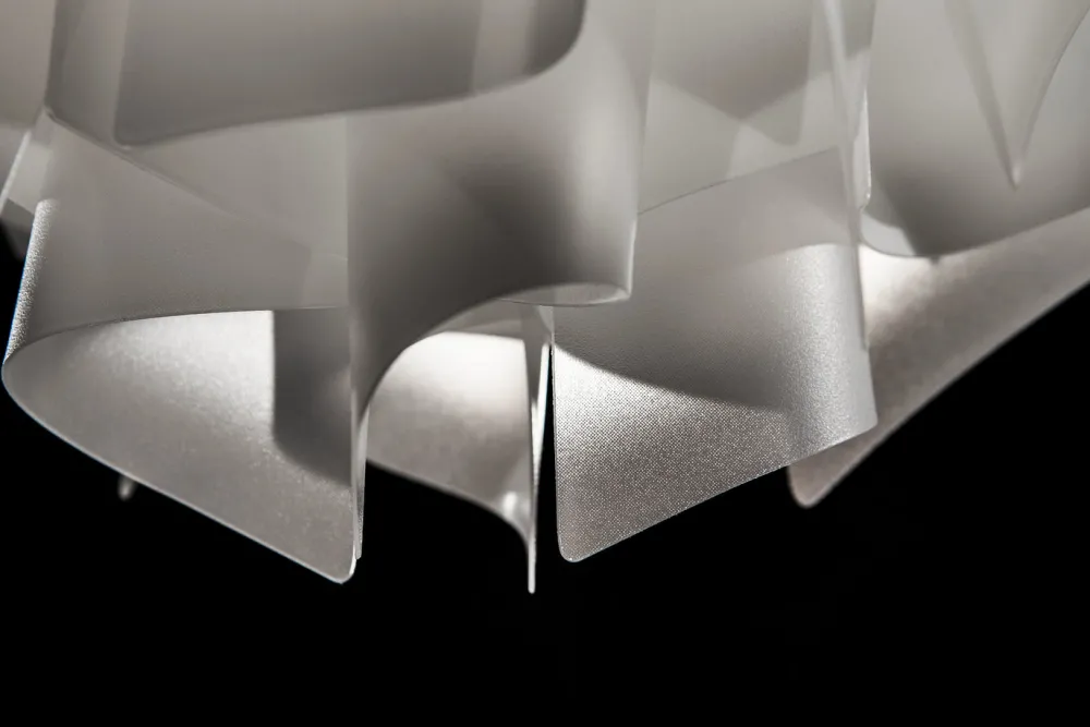 Inspirée par le monde diversifié de la haute couture où, avec des plis, des draperies et des coupes, on donne forme à des volumes souples tridimensionnels, Veli est une collection de lampes glamour et sophistiquée. Via un système d’emboitements effectués à la main, Veli s’articule en un dessin sinueux et élégant pouvant mettre en valeur tous les intérieurs en diffusant sa lumière dans toutes ses colorations multiformes et toujours avec une attache magnétique.