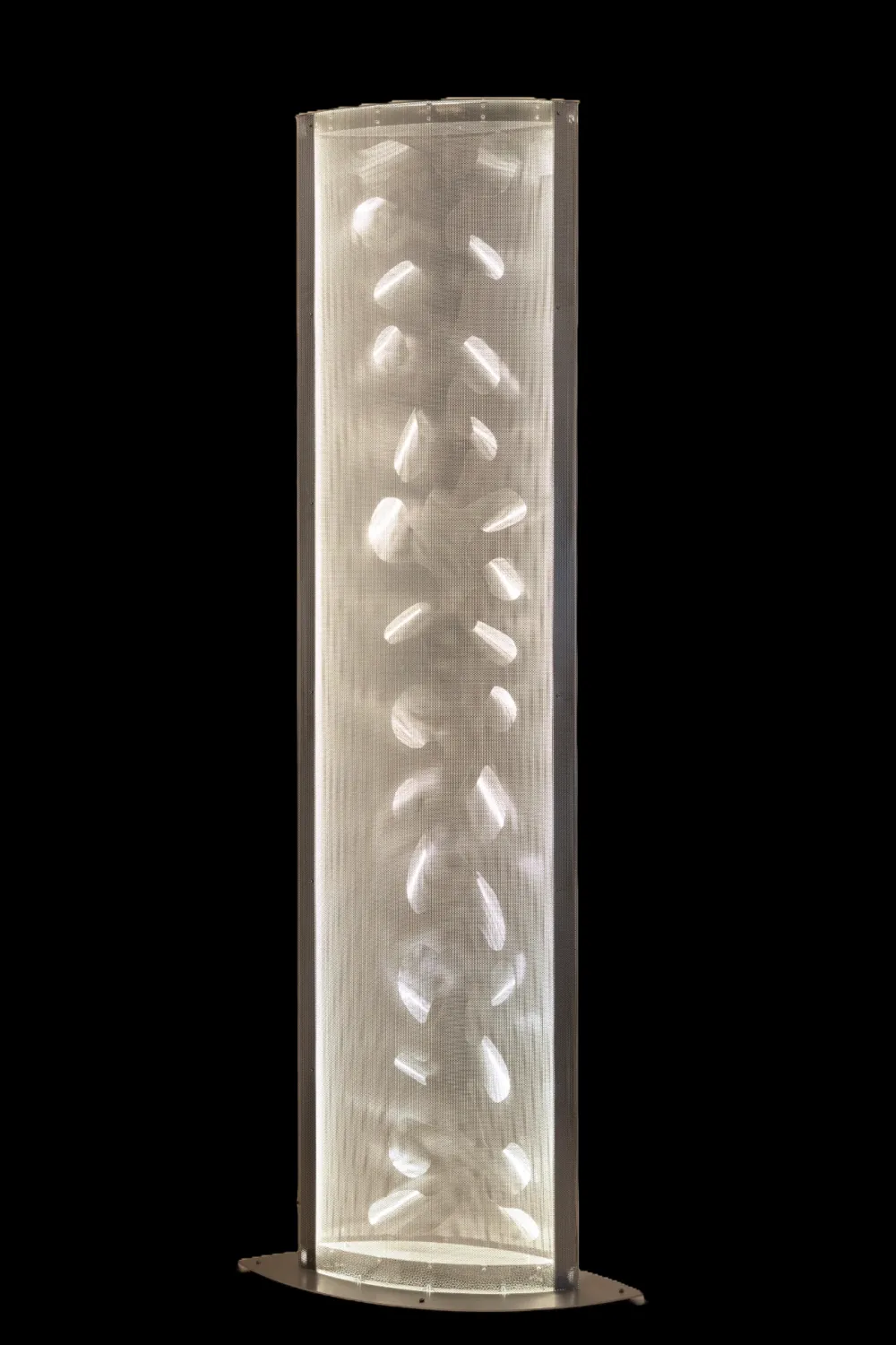 Véritable sculpture lumineuse en inox perforé poli miroir, la Colonne Ailes est réalisée de façon artisanale dans l’atelier parisien du designer.