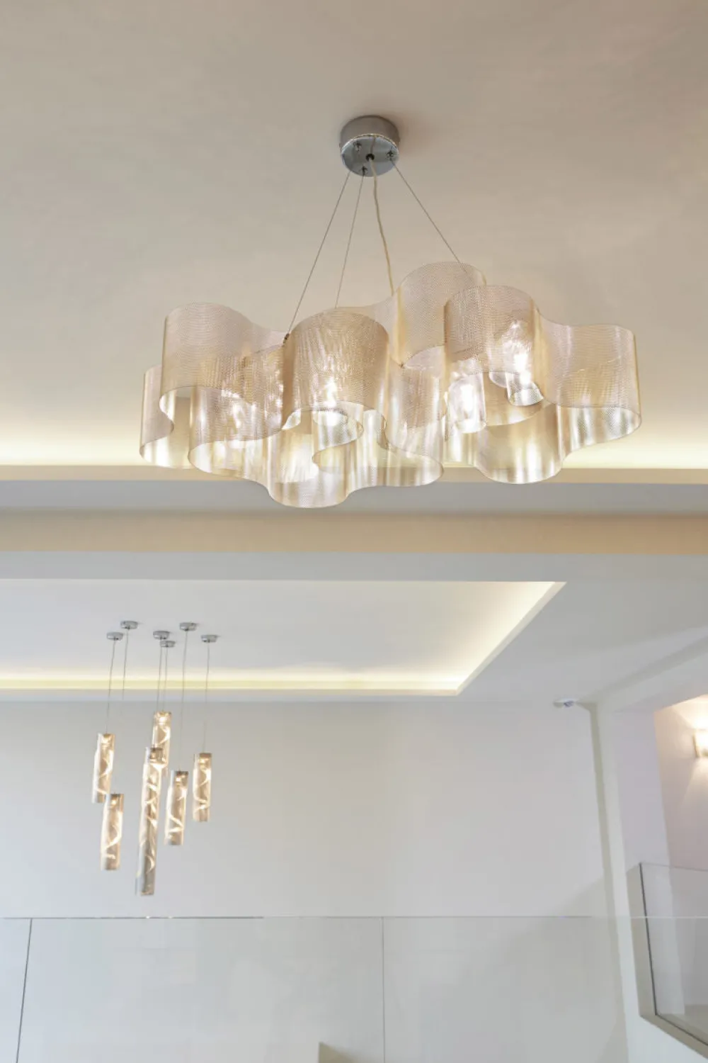 L’élégance intemporelle des courbes, juxtaposée à un matériau résolument contemporain, sculpte la lumière pour créer