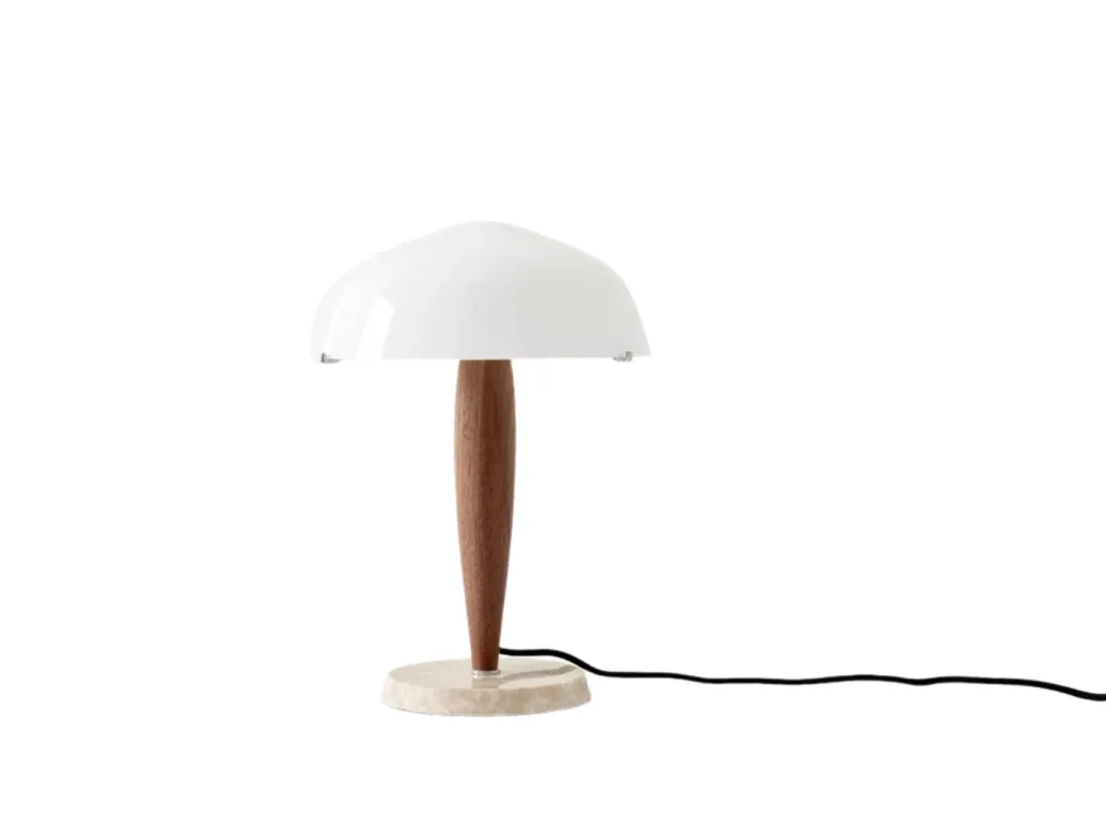 La lampe à poser Herman SHY3 porte le nom du célèbre auteur danois Herman Bang. La lampe est conçue comme un hommage à l’auteur et à la manière artistique dont il a vécu sa vie. Pour cette raison, la lampe a été choisie pour se composer d’un abat-jour en verre opale, d’un corps en bois de noyer et d’un pied en marbre, car cette composition rappelle les lampes qui se trouvaient sur le bureau de Bang quand il écrivait ses classiques. Les formes organiques et douces donnent un calme agréable à l’environnement et les matériaux naturels apportent confort et chaleur.