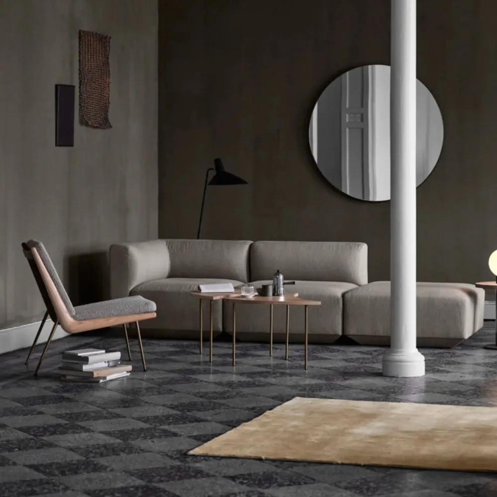 Conçu à l’origine pour l’hôtel royal SAS de Copenhague par Space Copenhagen, le miroir géométrique Amore SC49 se présente sous la forme d’un rectangle pleine longueur ou d’une version circulaire. Les deux modèles sont produits en Italie selon les plus strictes normes de qualité, avec un cadre en laiton bronzé et un miroir de couleur argentée. Le miroir Amore SC49 de And Tradition est réalisé sur une base en MDF sur laquelle est fixé un miroir argenté de haute qualité. Le cadre est fabriqué à partir d’un profilé métallique de 3 mm soudé et poli avec précision. L’arrière du miroir Amore SC49 est recouvert d’un textile souple pour éviter les rayures sur le mur lors du montage.