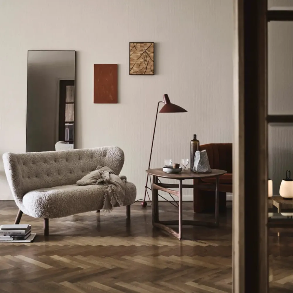 Conçu à l’origine pour l’hôtel royal SAS de Copenhague par Space Copenhagen, le miroir géométrique Amore SC49 se présente sous la forme d’un rectangle pleine longueur ou d’une version circulaire. Les deux modèles sont produits en Italie selon les plus strictes normes de qualité, avec un cadre en laiton bronzé et un miroir de couleur argentée. Le miroir Amore SC49 de And Tradition est réalisé sur une base en MDF sur laquelle est fixé un miroir argenté de haute qualité. Le cadre est fabriqué à partir d’un profilé métallique de 3 mm soudé et poli avec précision. L’arrière du miroir Amore SC49 est recouvert d’un textile souple pour éviter les rayures sur le mur lors du montage.