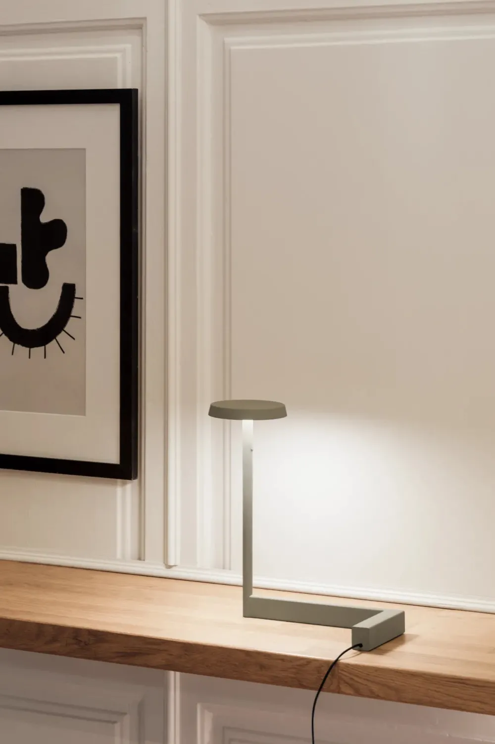 Flat diffuse la lumière vers le bas, et placée sur une étagère ou dans une bibliothèque, pourra également faire office de serre-livres.