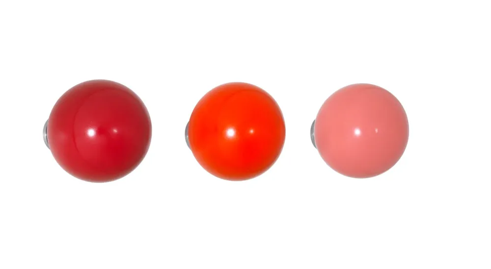 Les Coat Dots sont de petites boules en bois colorées qui se fixent au mur, créant des accents joyeux dans les cuisines et les salles de bains, ainsi que dans les espaces d’entrée et les vestiaires. Elles peuvent être regroupées dans des arrangements libres ou en rangées linéaires de trois boules ou plus, et permettent ainsi de créer d’attrayantes sculptures murales. Les Coat Dots peuvent également servir de patères si besoin est. Chaque boule est montée sur une tige en aluminium extensible pouvant être tirée légèrement hors du mur et former un crochet pratique pour manteaux, vestes ou cintres. Grâce à leurs couleurs vives et brillantes, les Coat Dots sont des accroche-regards séduisants.
