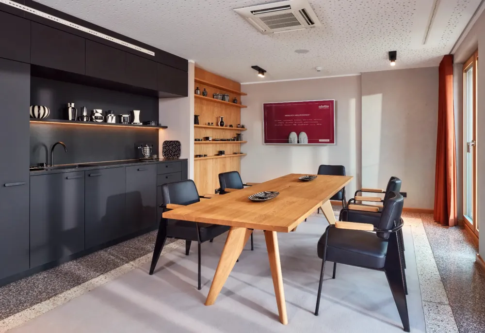 La Table Solvay issue de la maison Vitra doit sa conception au designer Jean Prouvé. Au cours des années 1940, son atelier a produit différentes pièces de mobilier pour l’entreprise de chimie Solvay – et notamment cette table. La Table Solvay est fabriquée à partir de bois massif huilé et d’une tige transversale en acier laqué époxy qui confère sa stabilité à l’ensemble en reliant les deux pieds de table. La Table Solvay est disponible au choix en chêne, chêne fumé ou noyer, et se décline en différentes tailles.