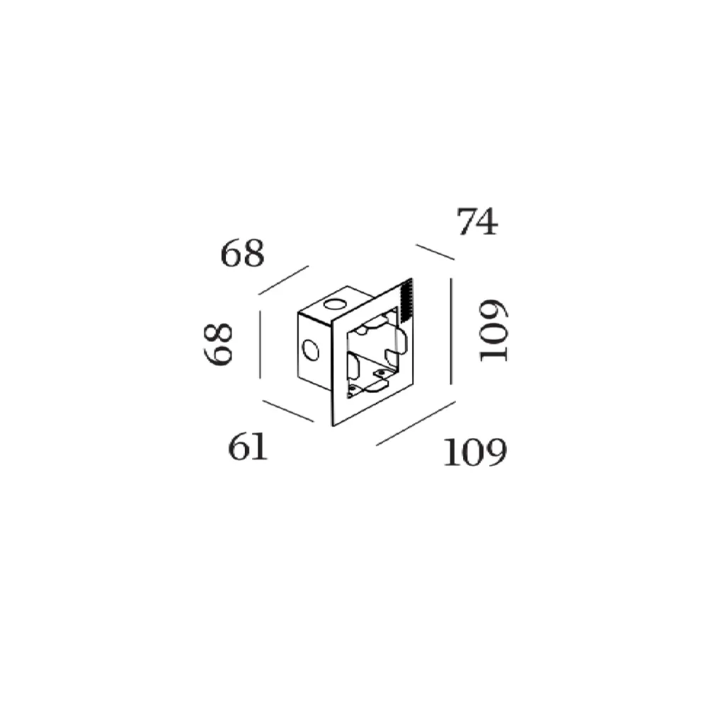 Avec des dimensions de 109 × 109 × 74 mm et une découpe requise de 68 × 68 mm, ce boîtier assure une installation stable et durable. Idéal pour les projets architecturaux modernes, il permet de créer un effet trimless sophistiqué, où seul le flux lumineux reste visible.