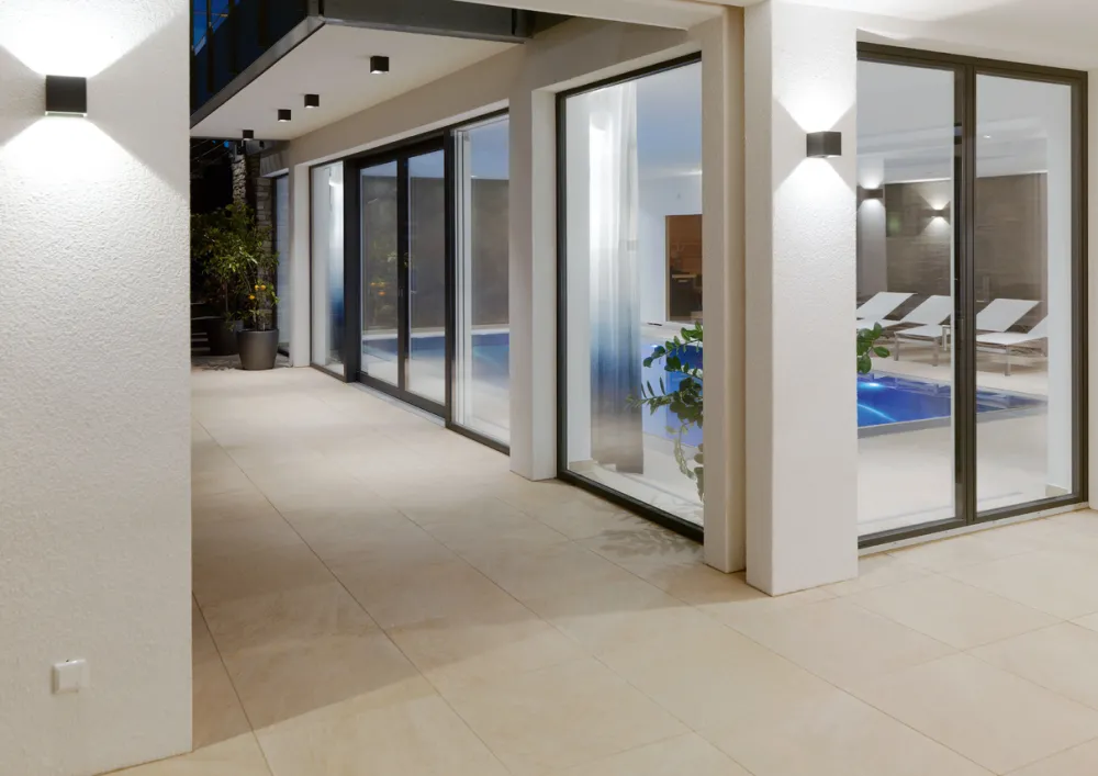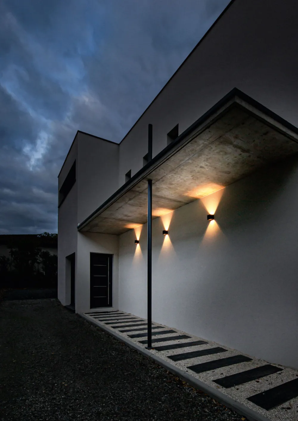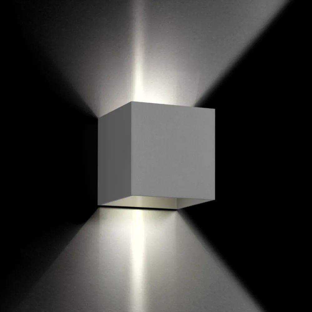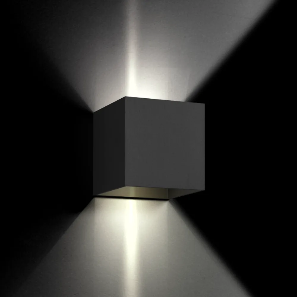 Box est une applique incontournable pour éclairage extérieur. Elle diffuse la lumère vers le haut et vers le bas, et animera de façon très élégante une façade.