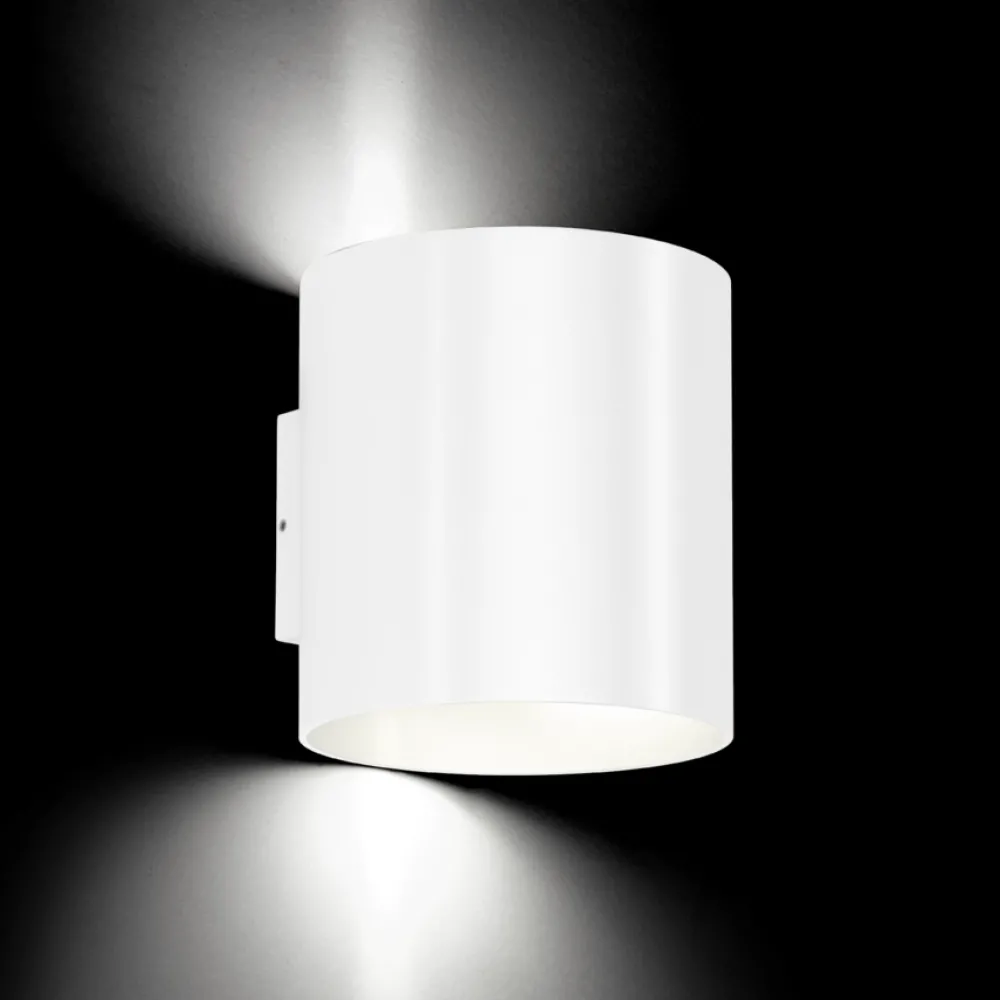 Une applique conçue pour l’extérieur diffusant la lumière vers le haut et vers le bas, aux normes IP65.