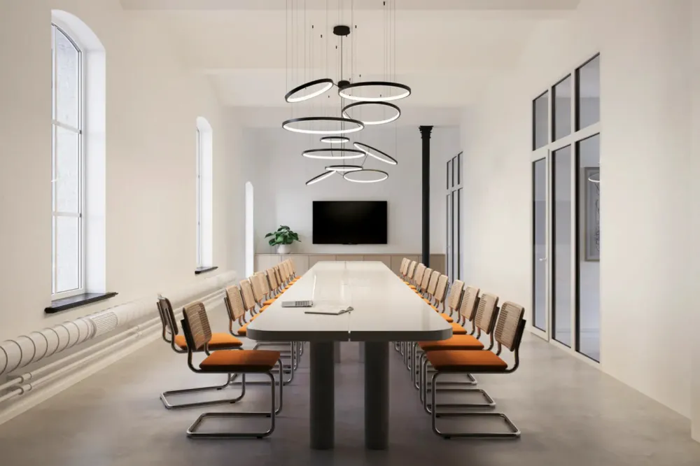 Doté d’un câble de suspension réglable jusqu’à 4000 mm et d’un cache-piton de sécurité noir, il s’adapte à différentes hauteurs de plafond. Son couvercle en silicone assure une diffusion homogène de la lumière pour un confort visuel optimal.