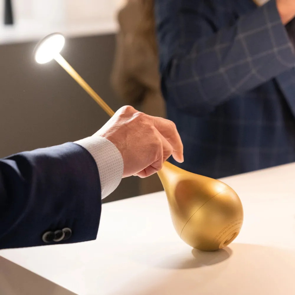 Dondolina est une lampe de table sans fil au design pop et original. Rechargeable et utilisable dedans comme dehors (IP65), elle se distingue par sa forme élancée et sa base arrondie qui lui permet de s’incliner avec un effet ludique. Un simple toucher sur sa tête suffit pour l’allumer, régler l’intensité (4 niveaux) et choisir la couleur de la lumière (3 options). Sa batterie rechargeable offre jusqu’à 9 heures d’autonomie et se recharge via une base incluse (chargeur vendu séparément). Disponible en cinq couleurs tendance, Dondolina apporte une touche de style et de fonctionnalité à tous vos espaces.