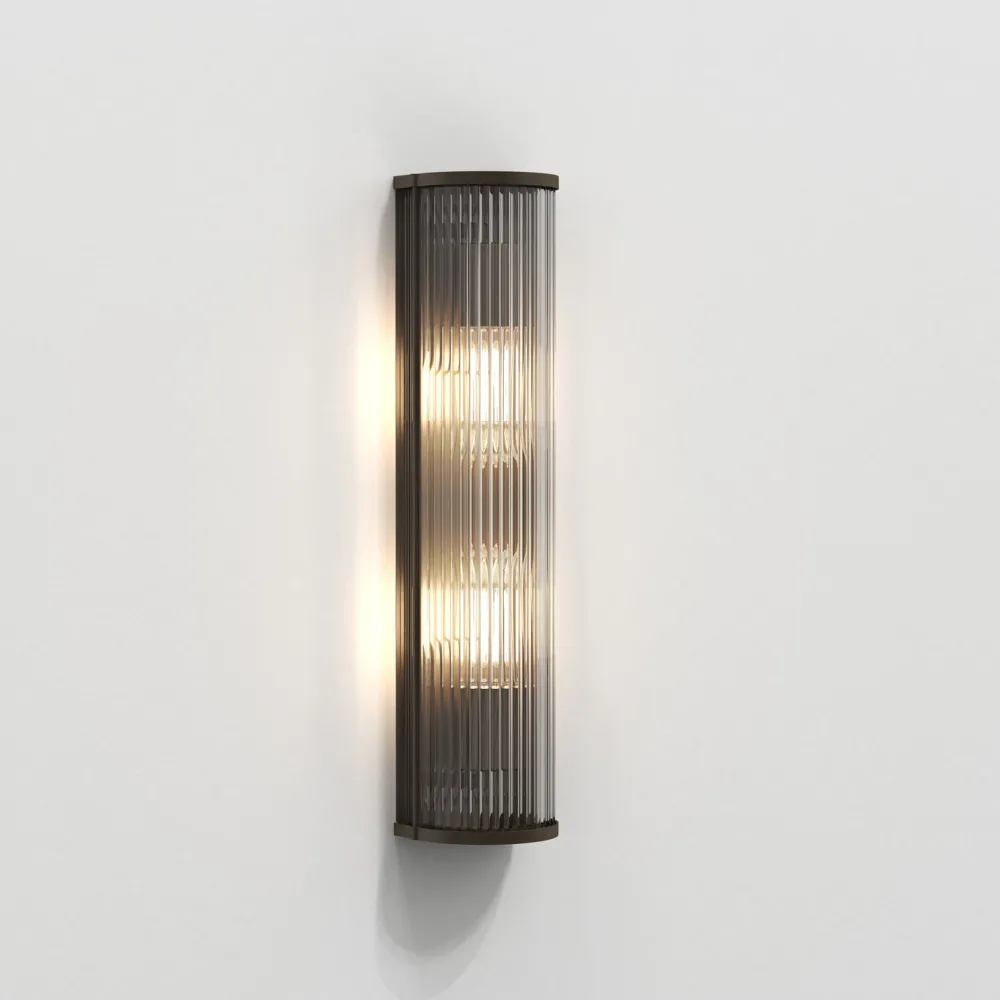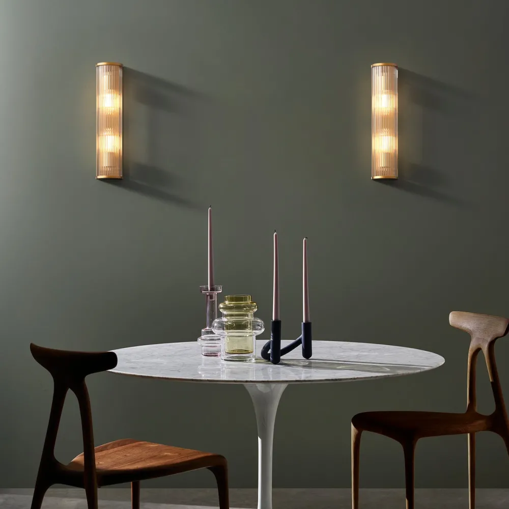 Inspirée des luminaires art déco, les imposantes dimensions de l’applique Avignon Round 525 font instantanément sensation, marquant tout espace de sa présence. Longue et filiforme, dotée d’un profil arrondi, elle se compose de tiges en verre transparent et étincelant et d’embouts en laiton ancien moulé sous pression. Elle émet un éclairage d’ambiance, sans éblouir. Pensée pour les environnements hôteliers, ce luminaire se fixe au mur via une seule vis discrète, afin que rien ne vienne détourner le regard de son esthétique uniforme.