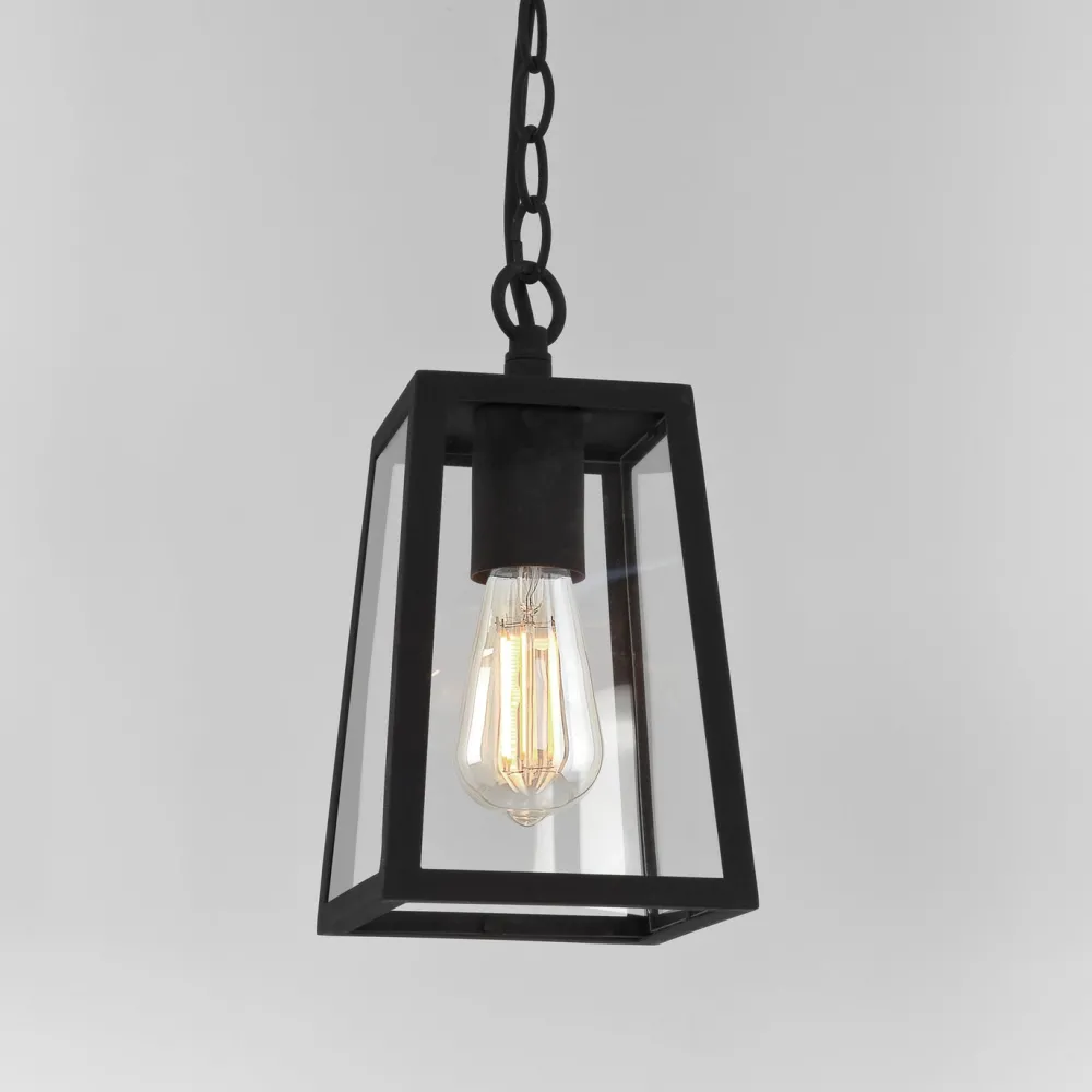 Suspension d’extérieur à placer au dessus de votre entrée ou de votre salon de jardin. Disponible en trois finitions avec verre transparent. Norme IP23. Classe 1.