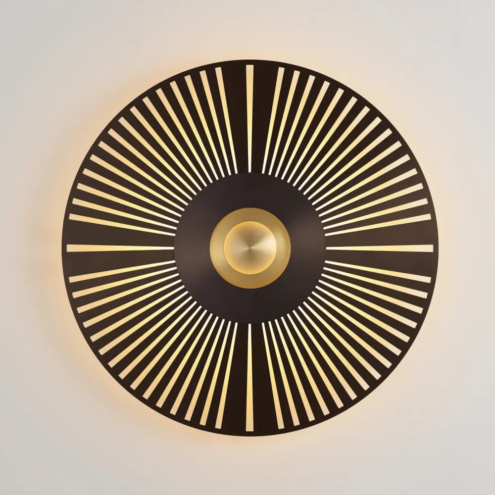 La collection Atmos complète la magnifique famille des appliques EARTH. Avec Atmos les tailles sont plus grandes, le choix des design est plus important, mais le principe est le même et toujours aussi magnifique. Le centre est le coeur lumineux de l’applique, la lumière est diffusée en passant par le décor du disque en laiton massif, créant un jeu d’ombres et de lumière splendide. Les appliques Atmos sont déclinées dans cinq décors différents et sont entièrement fabriqués en France. Avec qualité exceptionnelle, ils sont de véritables objets de décoration intérieure.