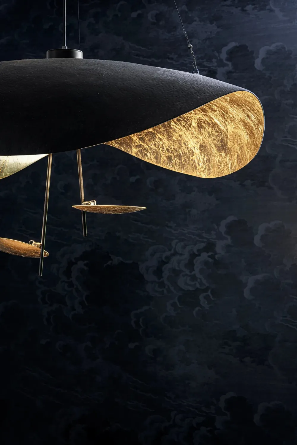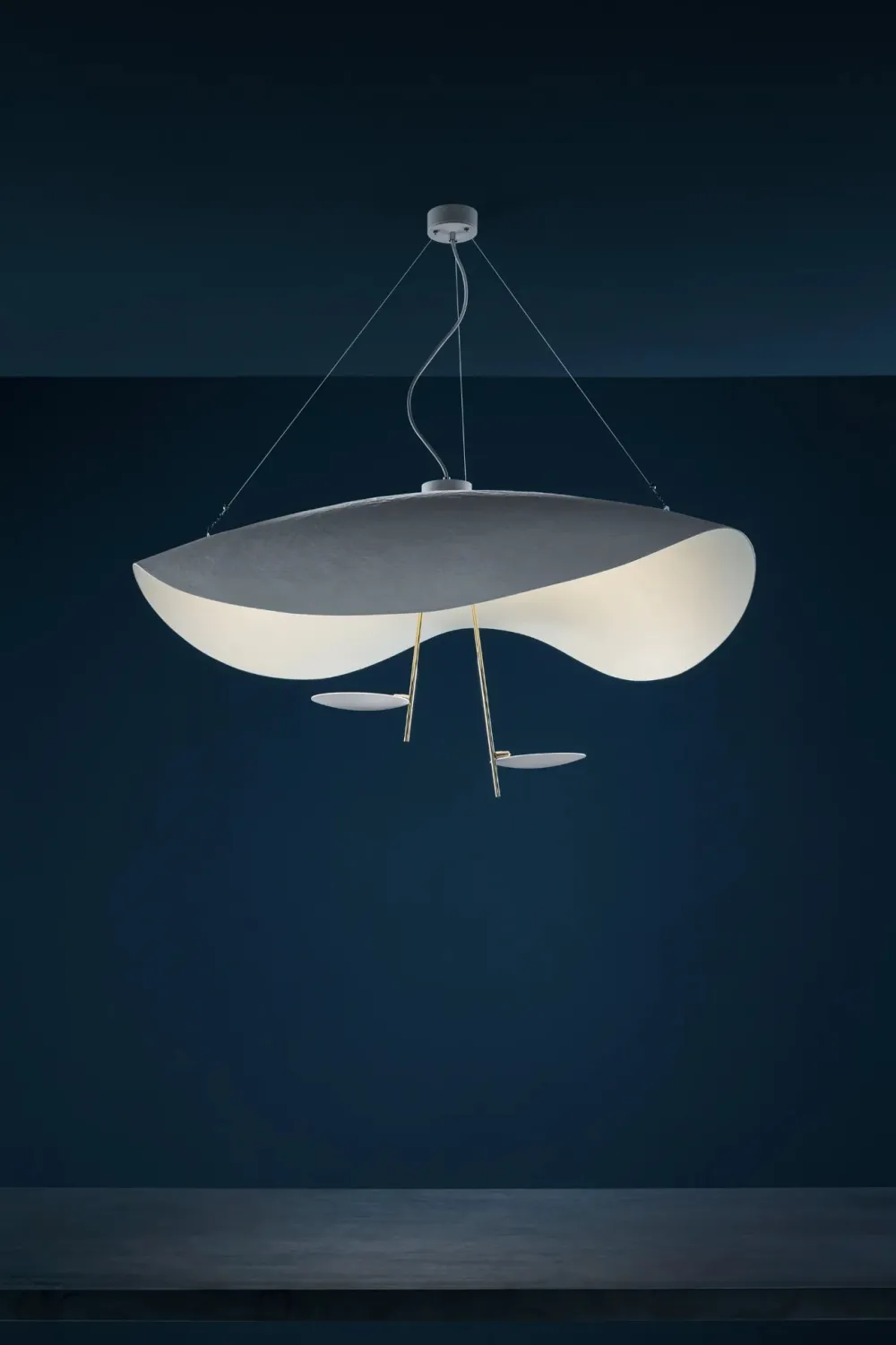 Connue pour ses créations esthétiques, Catellani&Smith propose avec Lederam une nouvelle collection poétique, inspirée par l’éclipse lunaire. Un design intemporel! Lederam est également très technique. Elle intègre la dernière génération de LED. Une technologie qui ne nécessite pas de transformateur et qui permet de faire varier l’intensité lumineuse. La suspension Lederam se compose de deux bras métalliques qui portent un petit disque rotatif en aluminium, le tout chapeauté par un grand abat-jour de fibre de verre aux belles ondulations.