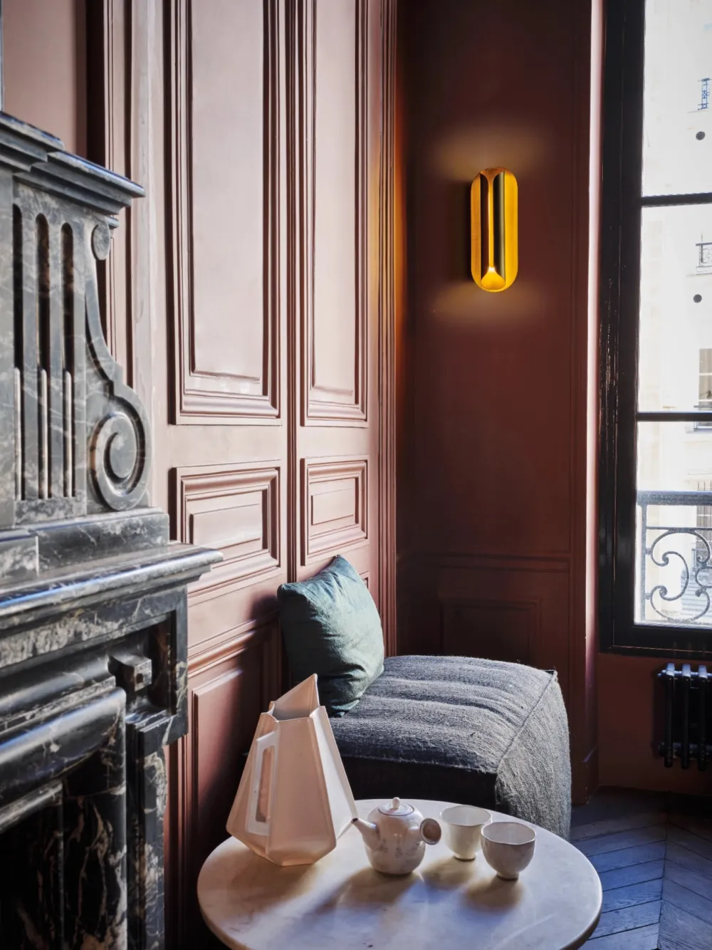 Créée par l’architecte et designer Julie Fuillet et le light designer Emeric Thiénot, Rosalie est une applique composée de plaques d’aluminium anodisé.