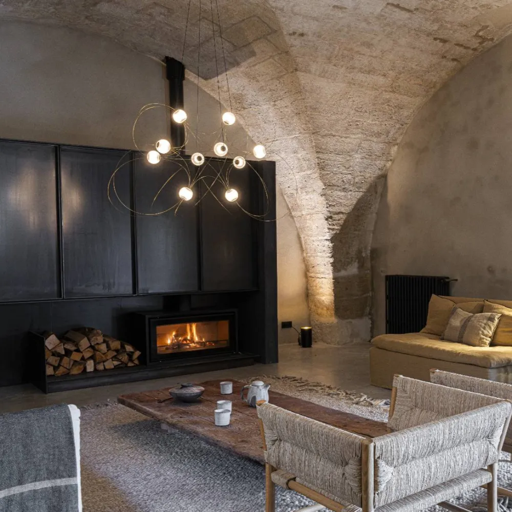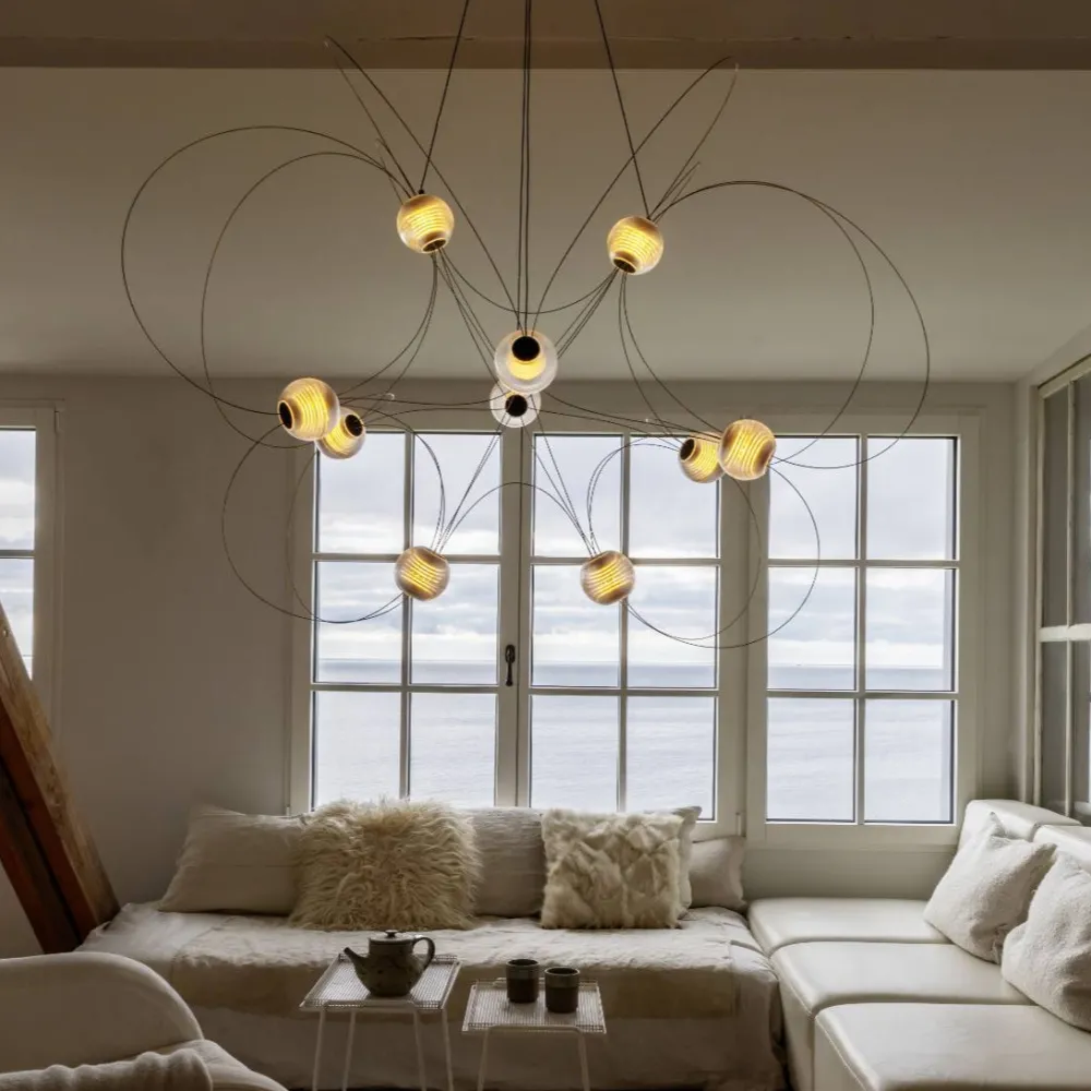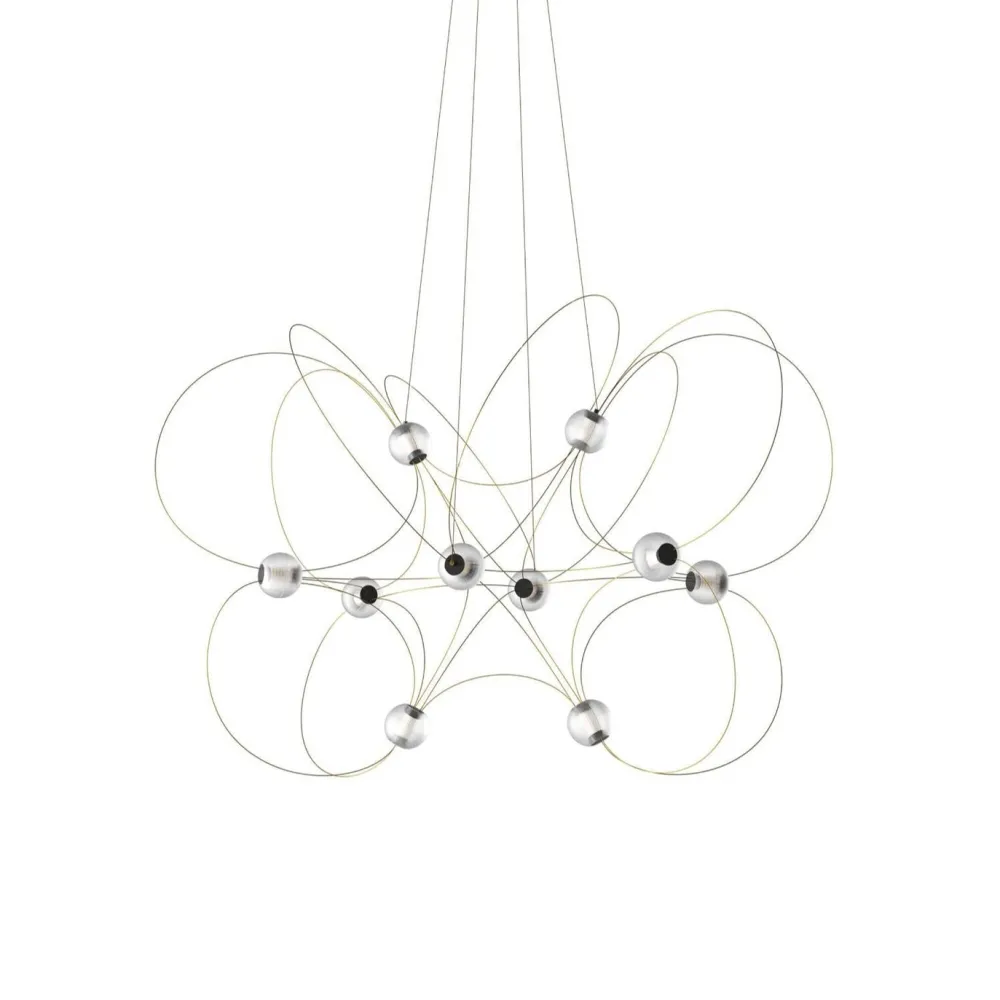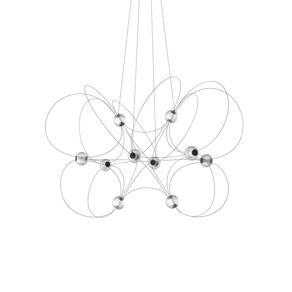 La suspension Munari 10 de DCW éditions, conçue par Lutz Pankow, est une pièce lumineuse sculpturale au design épuré et aérien. Avec ses dix sphères en acrylique suspendues par une structure en acier et aluminium, elle crée un effet visuel dynamique, rappelant des constellations ou des lignes de force invisibles. Équipée d’une technologie LED performante, elle diffuse une lumière douce et chaleureuse tout en restant économe en énergie.