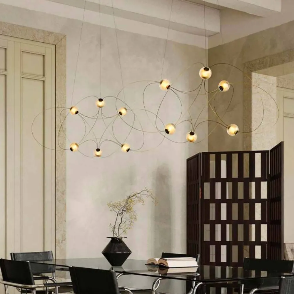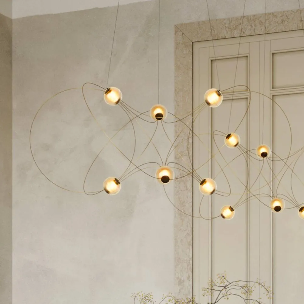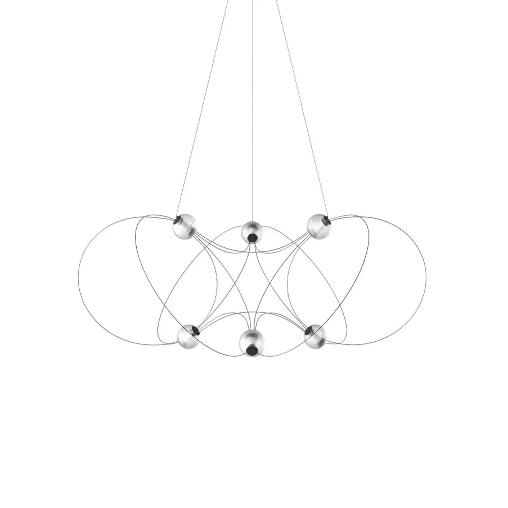 La suspension Munari 6, imaginée par Lutz Pankow, est une création lumineuse à la fois poétique et architecturale. Composée de six sphères en acrylique transparent, reliées par de fines tiges en acier à ressort, elle donne l’illusion de formes flottantes en apesanteur. Son design épuré et graphique évoque le mouvement et la légèreté. Élégante et contemporaine, elle s’intègre harmonieusement dans différents espaces, qu’ils soient résidentiels ou professionnels.