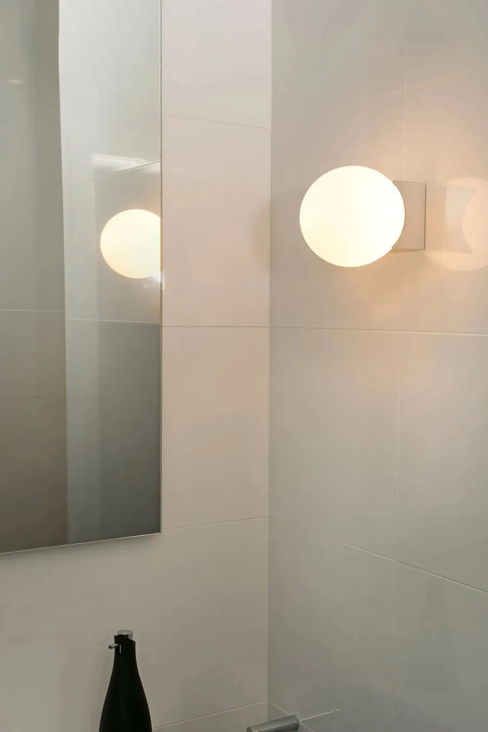 LAGO est une applique conçue pour l’éclairage de la salle de bains. Grâce à son indice de protection IP44, elle est parfaitement adaptée aux environnements humides. Son design épuré en aluminium chromé et son diffuseur en verre opale lui permettent de s’intégrer facilement dans les intérieurs modernes.
