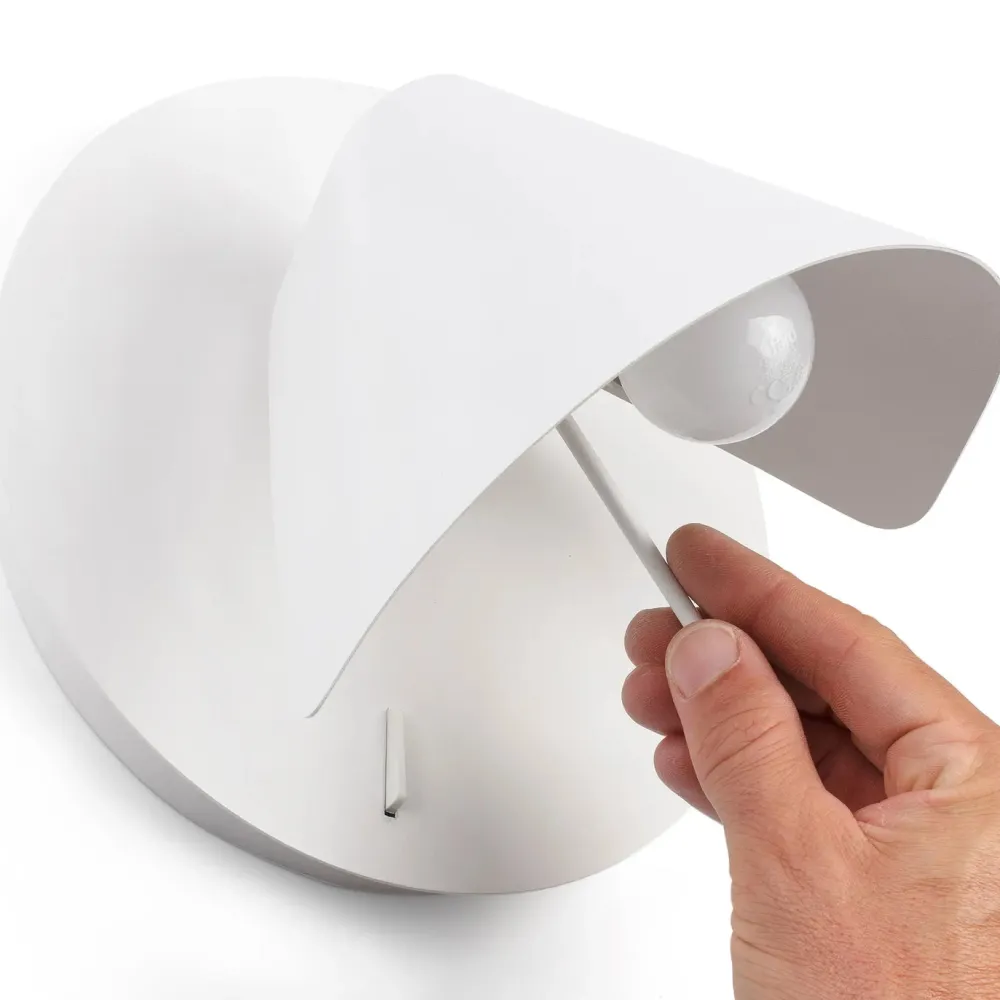 NOON, applique murale moderne et orientable conçue par Alegre Design. Structure en acier blanc mat, interrupteur intégré. Source E27 non incluse.