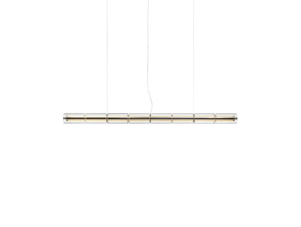Chaque cylindre est suspendu autour d’un corps horizontal en aluminium extrudé poli, qui renferme deux bandes LED : l’une orientée vers le haut, l’autre vers le bas. L’utilisateur peut sélectionner la direction de la lumière et en ajuster l’intensité de manière indépendante grâce à un variateur tactile intégré.