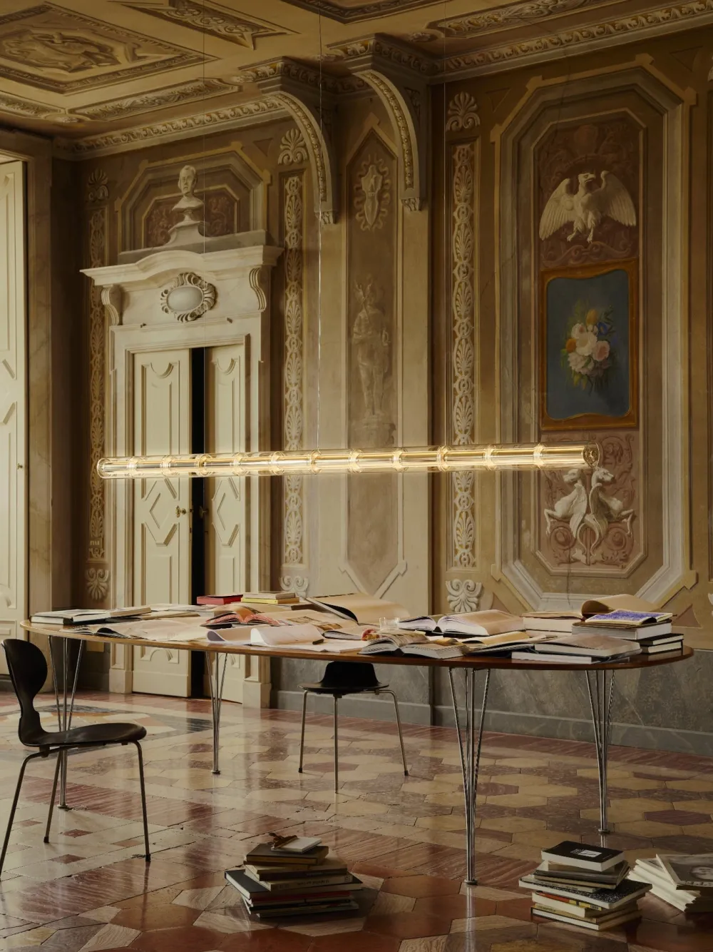 Avec sa longueur de 1,5 mètre, Luce Sferica S1 Cylindrique est idéale pour un éclairage élégant au-dessus d’une table ou dans un bureau privé, apportant une lumière diffuse, maîtrisée et un langage visuel résolument contemporain.