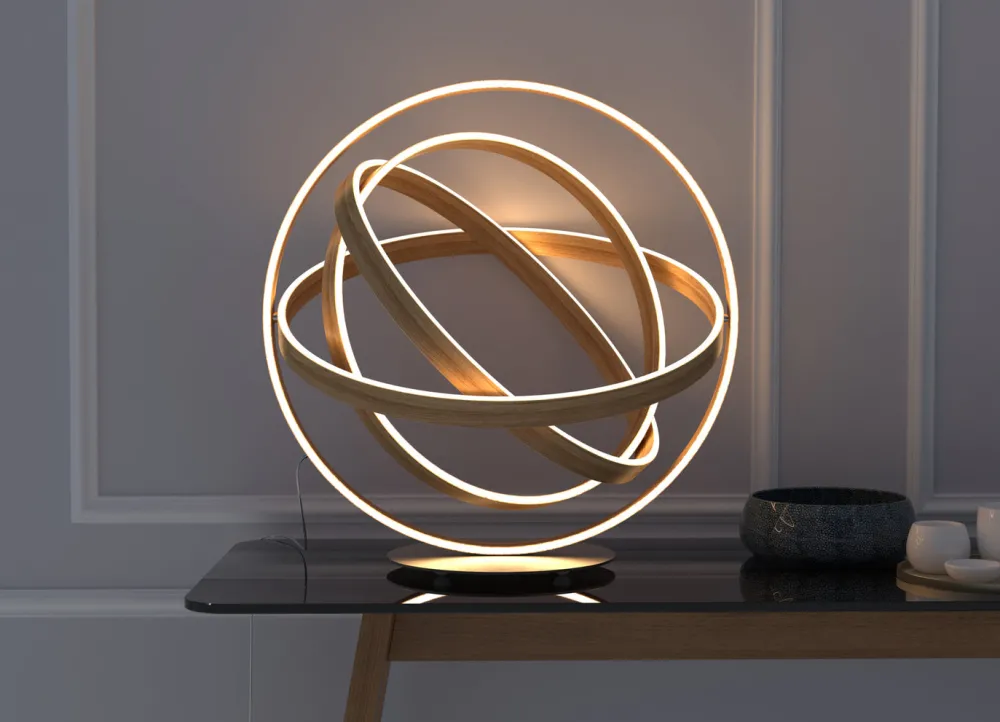 Ludique et poétique, cette étonnante lampe doit son nom à l’astéroïde du Petit Prince. Les anneaux en bois sont orientables et la lampe est livrée avec une télécommande permettant de faire varier la lumière.