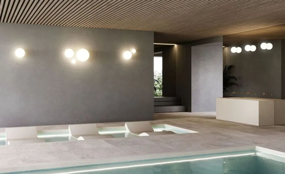 La série Volum revisite les archétypes de la technologie d’éclairage, alliant fonctionnalité et esthétique avec la touche artistique du verre dans toute la pièce. Volum diffuse la lumière uniformément à 360 degrés, créant une atmosphère uniforme et calme dans toutes les directions. Cette collection se décline en plusieurs luminaires : suspensions, appliques, plafonniers et lampes de table. Une solution d’éclairage unique conçue pour créer des compositions scénographiques, offrant une diffusion homogène et confortable de la lumière. Sa forme rappelle celle de bulles liquides dispersées dans l’atmosphère, le rendant idéal pour les environnements domestiques tels que les salons ou les cuisines. Bien que sa structure soit simple, Volum représente une étude raffinée des matériaux et de la technique, offrant ainsi une solution esthétique et pratique d’éclairage.