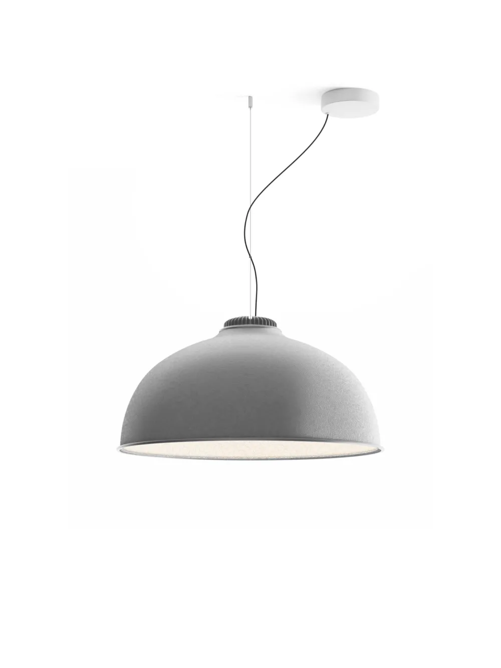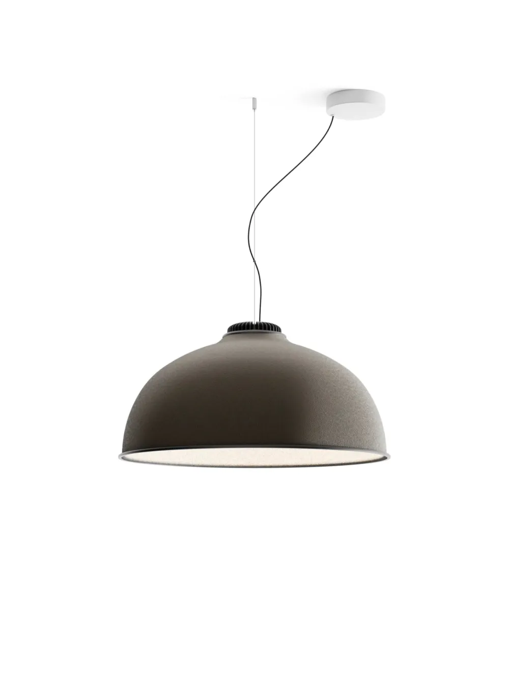 La suspension Luceplan Farel se distingue par son design architectural et responsable. Ce luminaire unique introduit une structure en dôme acoustique, pensée pour offrir un éclairage chaleureux et confortable, avec une température de couleur de 2700K. Cette lumière douce crée une ambiance apaisante, idéale pour une pièce de repos ou de détente.Conçue en matériau thermoformé à absorption sonore et recouverte de tissu, cette suspension design marie esthétique et fonctionnalité. Elle est entièrement personnalisable grâce à différentes teintes disponibles à l’intérieur comme à l’extérieur : tons chauds, froids ou neutres, pour s’intégrer parfaitement dans tout espace d’intérieur.Engagée pour la planète, la suspension Luceplan Farel affiche une conception écoresponsable. Le tissu extérieur est composé de fils 100 % recyclés, issus de déchets plastiques marins transformés via l’initiative SEAQUAL. L’intérieur, lui, est en feutre à 60 % recyclé, assurant une qualité durable et respectueuse de l’environnement.Grâce à son installation modulable, la hauteur de la lampe peut être adaptée selon la configuration de l’espace. La Farel devient ainsi un choix parfait pour ceux qui recherchent des lampes esthétiques, innovantes et éco-conçues.Cette suspension confirme la volonté de Luceplan de combiner technologie, durabilité et style. Elle s’impose naturellement dans le paysage des luminaires contemporains.