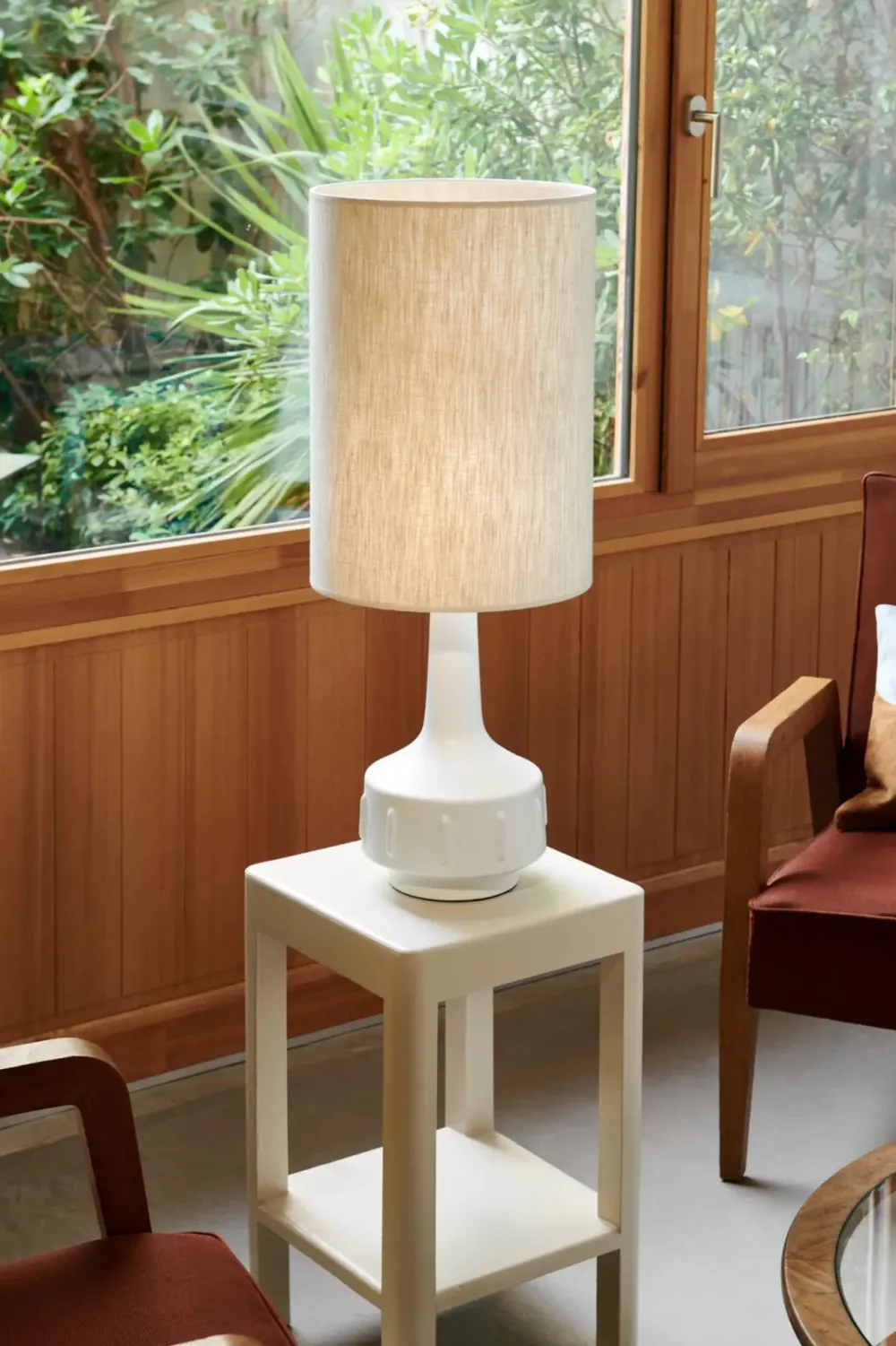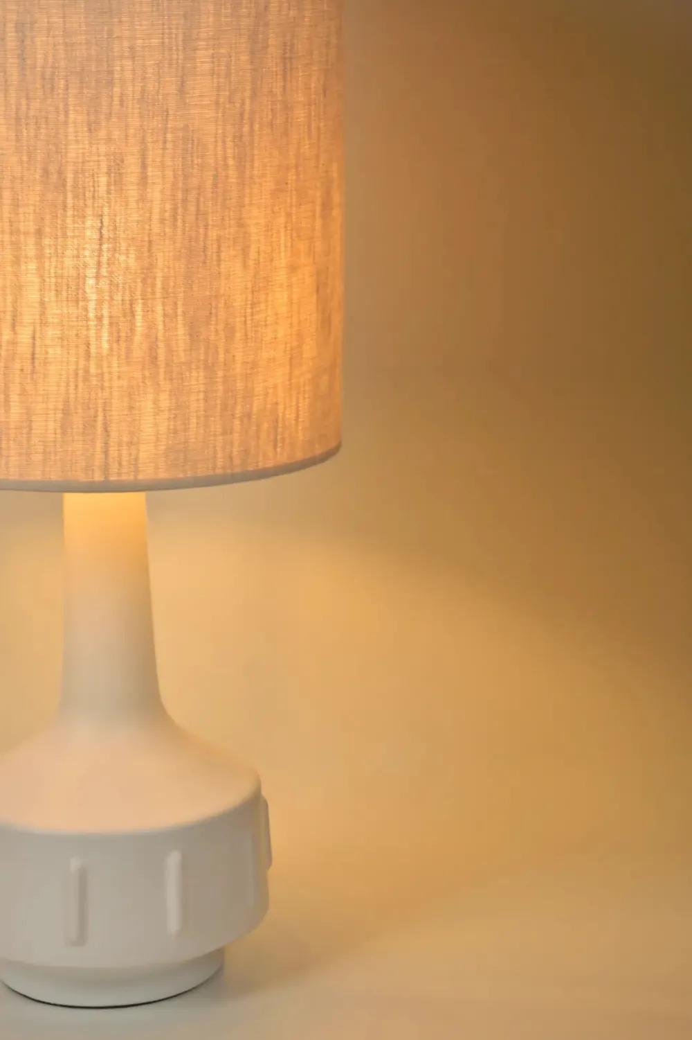 L’abat-jour en tissu, de forme tubulaire, diffuse un éclairage doux et homogène, parfait pour créer une atmosphère chaleureuse dans un salon, une chambre ou un espace de réception. Son style intemporel s’intègre aussi bien dans une décoration classique que contemporaine.
