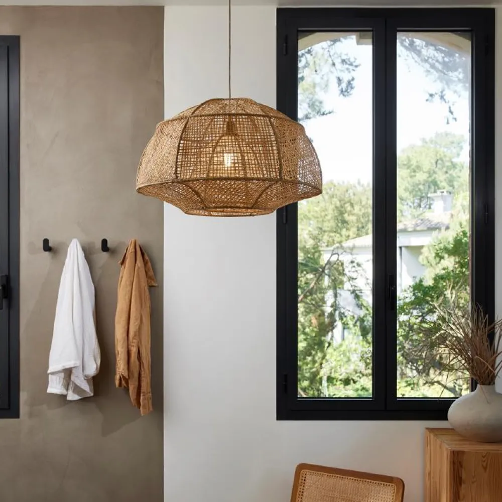 A la croisée des mondes et des cultures, la collection Odyssée de Market Set vous emmène au-delà des mers et des océans, pour une reconnexion totale avec la nature. Les suspensions et abat-jour en raphia naturel sont entièrement tressés à la main au Maroc. Ils puisent leur inspiration des nasses de pêche ancestrales. Leur double cage capture la lumière et crée des effets lumineux exceptionnels. La finesse de leur tressage et leurs authentiques irrégularités contrastent avec leurs bases en bois tourné d’acacia, droites, sobres et régulières, fortes comme des totems et fabriquées au Portugal. Un nouveau cordon textile effet lin et des touches finition laiton brossé équipent toute la gamme pour une expérience déco absolue.