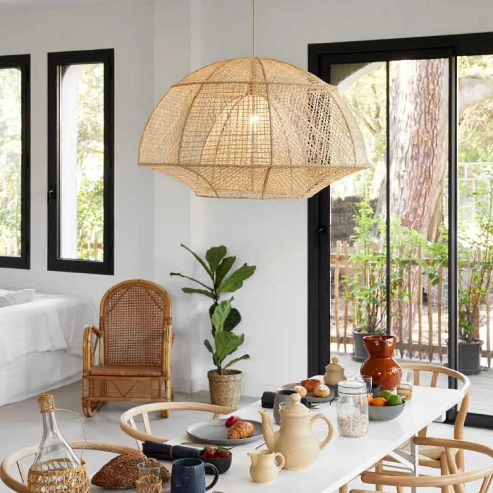 A la croisée des mondes et des cultures, la collection Odyssée de Market Set vous emmène au-delà des mers et des océans, pour une reconnexion totale avec la nature. Les suspensions et abat-jour en raphia naturel sont entièrement tressés à la main au Maroc. Ils puisent leur inspiration des nasses de pêche ancestrales. Leur double cage capture la lumière et crée des effets lumineux exceptionnels. La finesse de leur tressage et leurs authentiques irrégularités contrastent avec leurs bases en bois tourné d’acacia, droites, sobres et régulières, fortes comme des totems et fabriquées au Portugal. Un nouveau cordon textile effet lin et des touches finition laiton brossé équipent toute la gamme pour une expérience déco absolue.