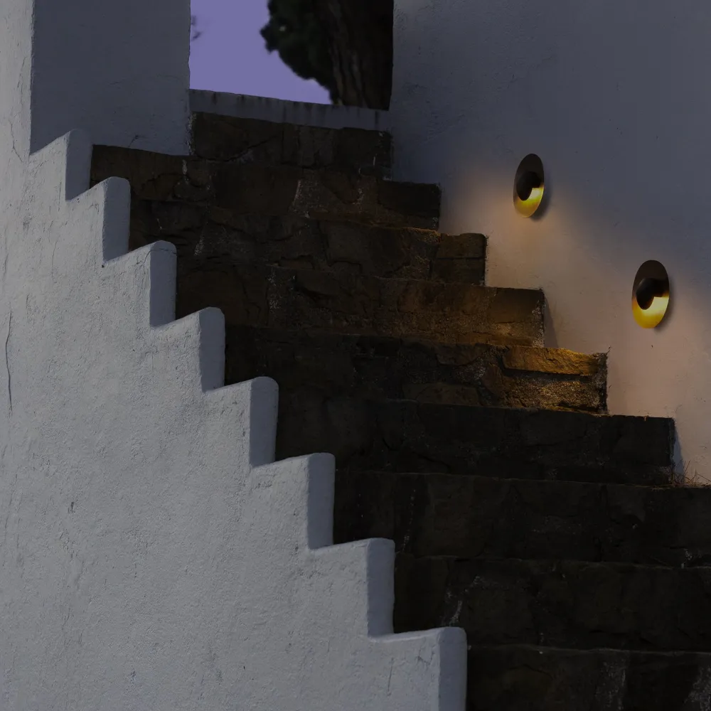 Pour éclairer les allées, une nouvelle version d’écran peut être fixée au mur, projetant une lumière retenue vers le bas qui évite l’éblouissement et n’illumine que le chemin.