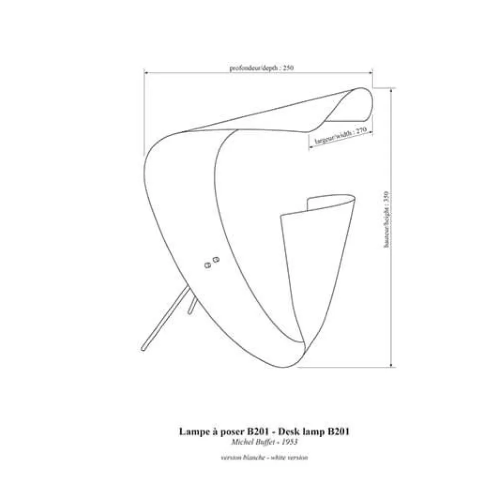 Un classique du design en édition limitée et numérotée ! En rééditant la lampe B201, l’éditeur ‘Ligne de démarcation’ rend hommage à l’intemporelle modernité de cette création emblématique de Michel Buffet initialement créée en 1953. Produite en France avec un mode de fabrication alliant petite industrie et artisanat d’art, la lampe B201 nous fait remonter aux sources du design contemporain. Réalisée à partir d’une feuille d’acier laqué, cette lampe de table aérienne est le fruit d’un remarquable travail sur la matière et la forme. L’acier adopte de superbes formes ondulantes donnant l’illusion d’un mouvement perpétuel. La structure et le diffuseur, réalisés à partir d’une même pièce, se confondent dans une remarquable fluidité. L’ampoule est invisible, dissimulée par la structure. Les pieds en laiton apportent une touche de raffinement. Chaque exemplaire est numéroté et livré avec son certificat d’authenticité.