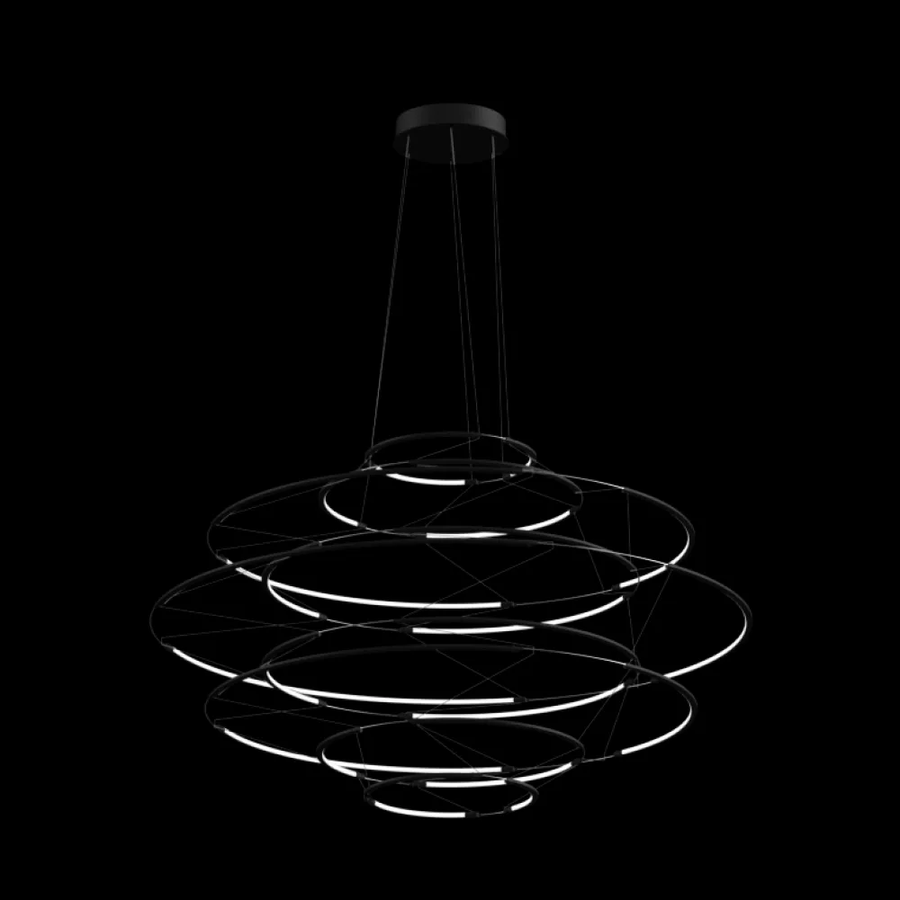 Explorez la suspension Drop 9, au design élégant avec une finition en noir mat, conçue par Arihiro Miyake pour la prestigieuse marque italienne Nemo Lighting.