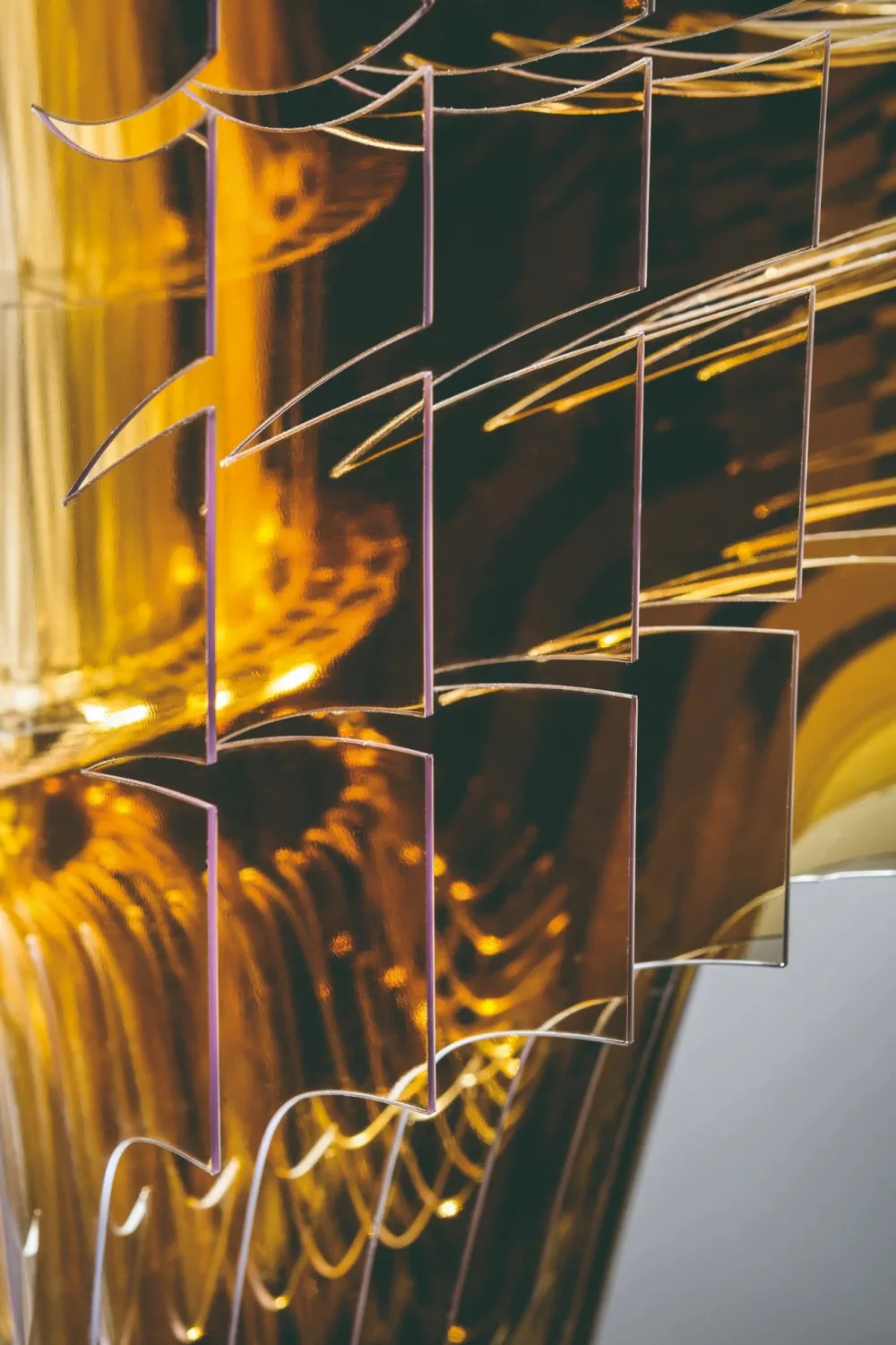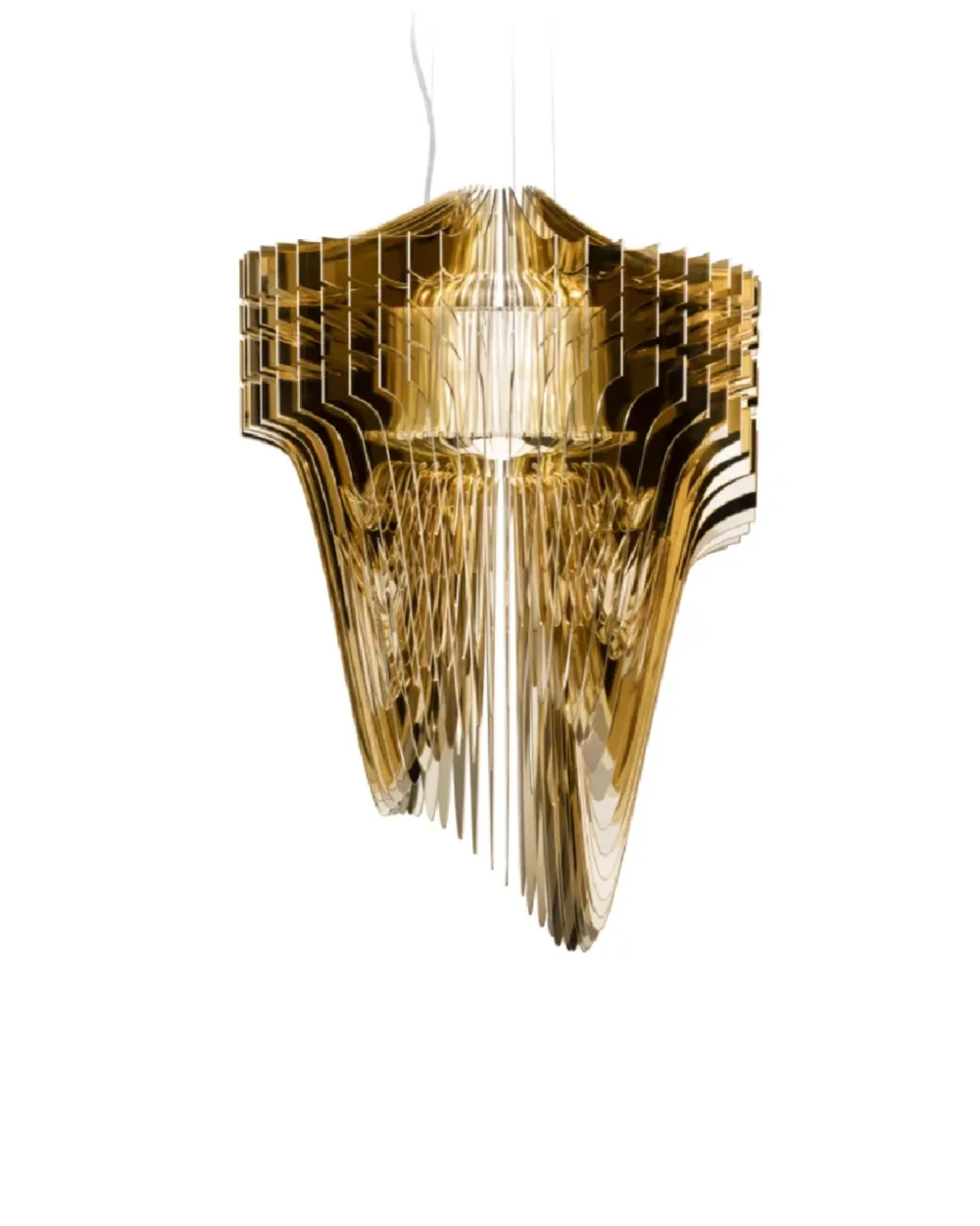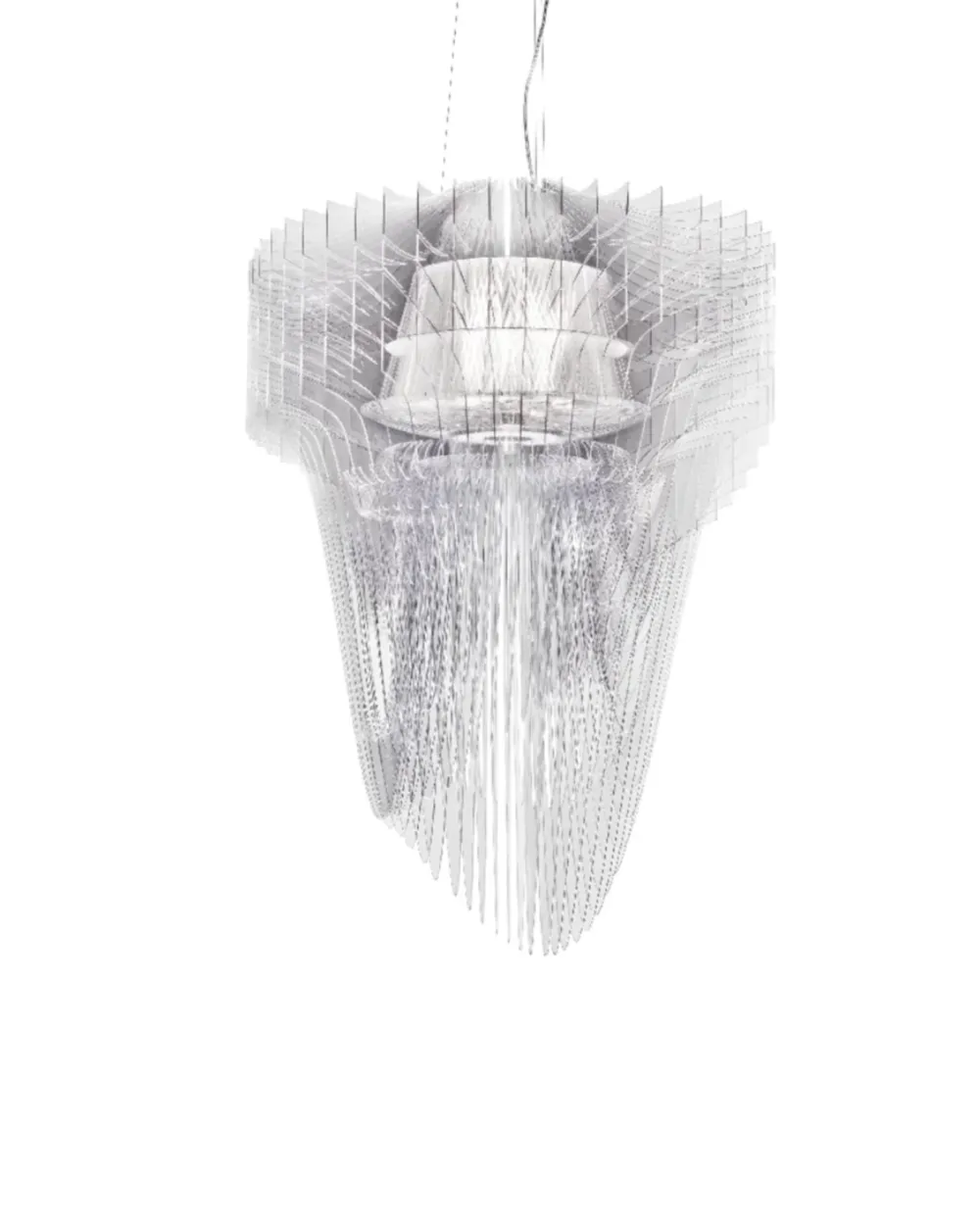 Cette version intermédiaire reprend toute l’esthétique iconique de la collection Aria, tout en s’adaptant aux espaces résidentiels, salons, salles à manger ou espaces de réception. Elle offre une lumière enveloppante et dramatique, tout en devenant une véritable œuvre d’art suspendue, entre technologie et émotion.