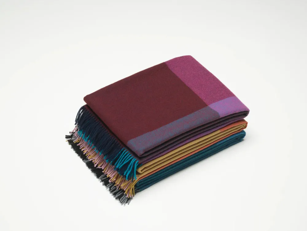 Les plaids Colour Block sont réalisées en laine des hauts plateaux du Pérou, provenant d’une race hybride de moutons : un croisement entre un mérinos, dont la laine est extrêmement douce, et un mouton Corriedale qui est connu pour ses fibres robustes.