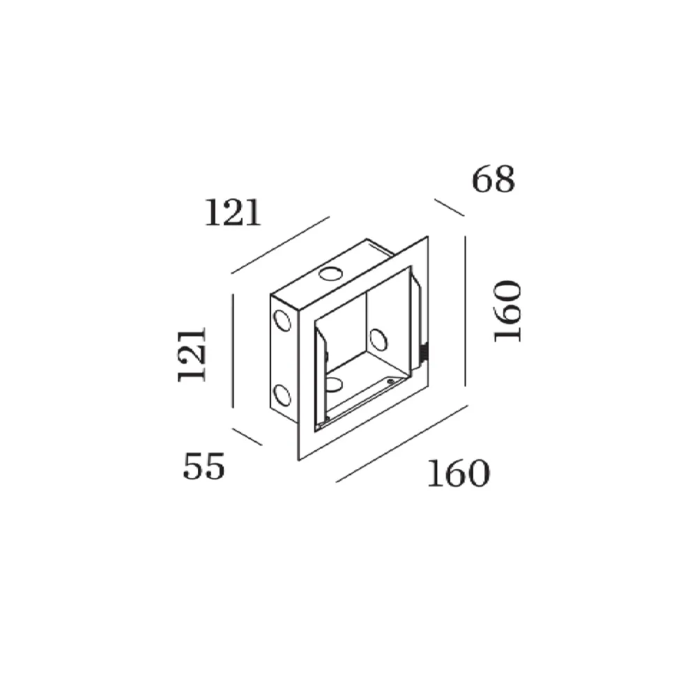 Avec ses dimensions généreuses (160 × 68 × 160 mm) et une découpe recommandée de 122 × 122 mm, il garantit une fixation stable, durable et un rendu parfaitement encastré. Ce boîtier est idéal pour les projets d’éclairage haut de gamme, alliant technicité et esthétique épurée.