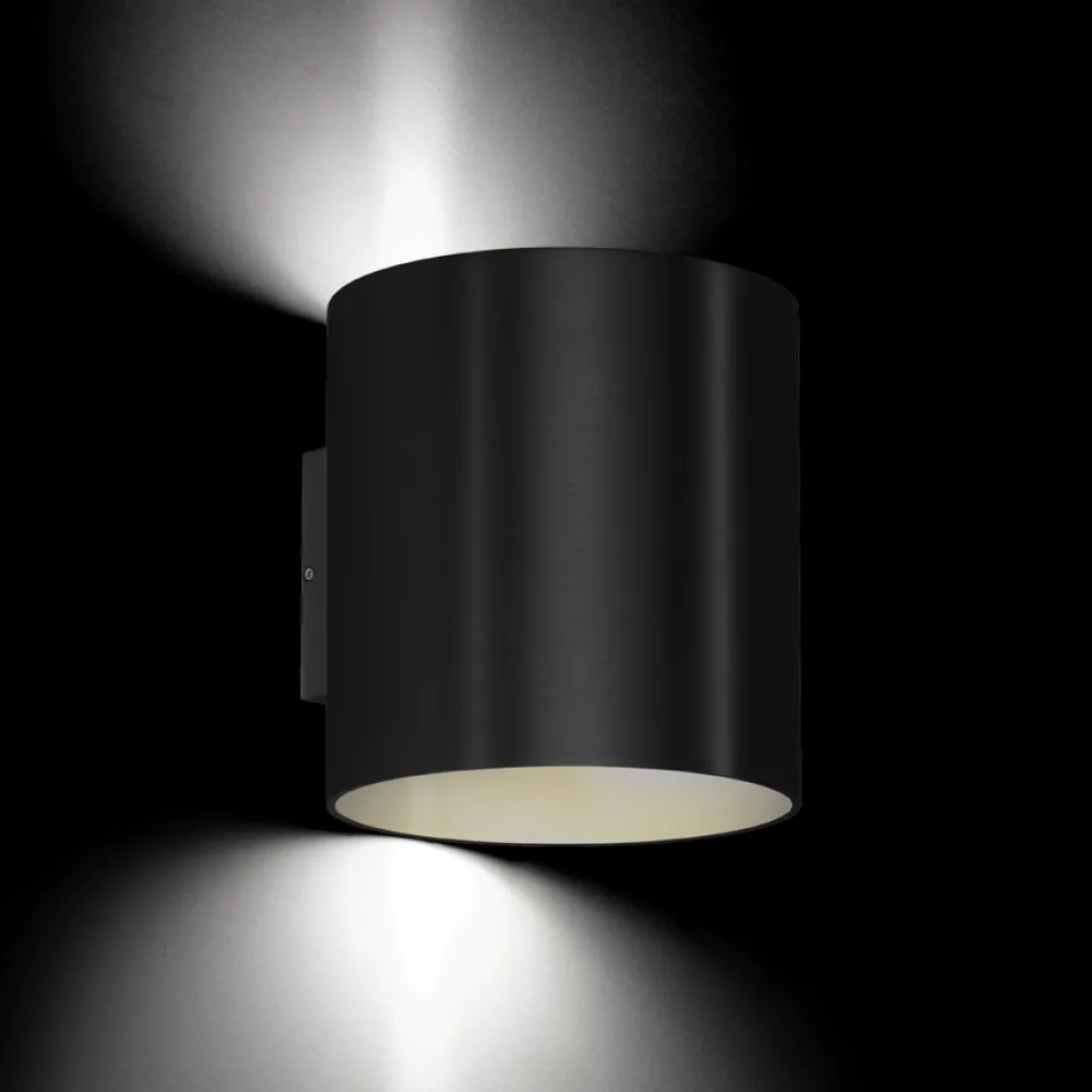 Une applique conçue pour l’extérieur diffusant la lumière vers le haut et vers le bas, aux normes IP65.