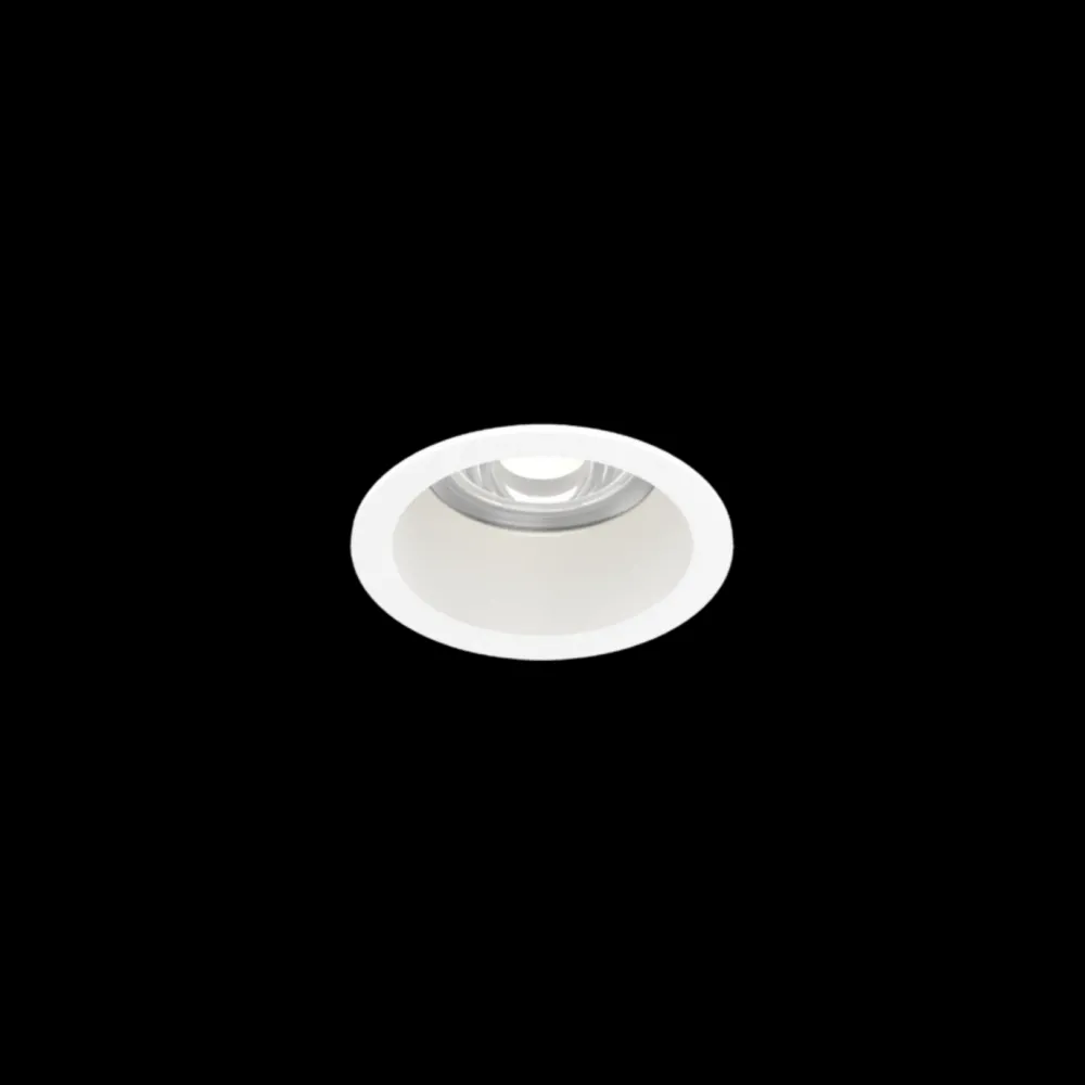 Downlight rond encastrable avec technologie COB. Lumière chaude 2700K, CRI ≥ 90, angle de diffusion 30°. UGR ≤ 16, IP65, classe III, marquage IC. Profondeur d’encastrement 85 mm, montage sans outil. Driver non inclus. Source lumineuse non remplaçable.