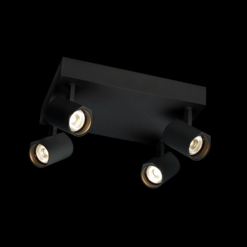Plafonnier avec 4 spots en aluminium moulé sous pression à base rectangulaire. Il est sobre et à la fois décoratif et vous permettra d’éclairer un dégagement, une chambre ou un dressing. Il est inclinable à 90° et rotatif à 350°. Persienne en nid d’abeille en option disponible, pour réduire l’éblouissement, la source lumineuse est remplaçable par un professionnel autorisé et l’appareillage de commande est remplaçable par l’utilisateur final. Cette applique est également disponible en 3000K – Nous contacter.