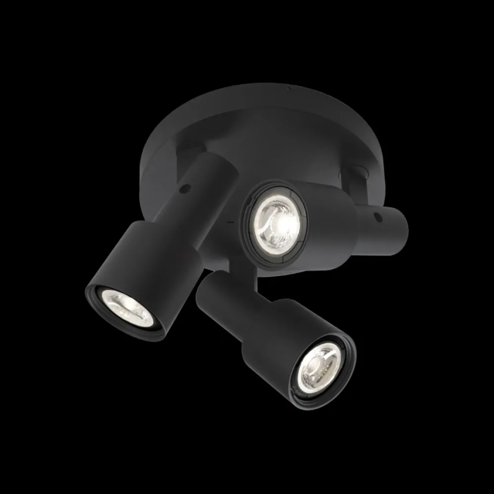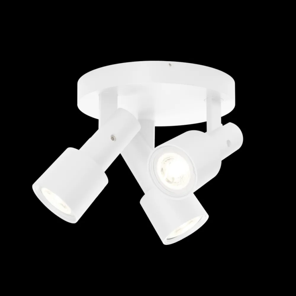 Ces 3 spots placés sur une base ronde permettent d’éclairer un dressing ou un dégagement. Les spots s’orientent individuellement vers le bas à 90° puis à 330°.