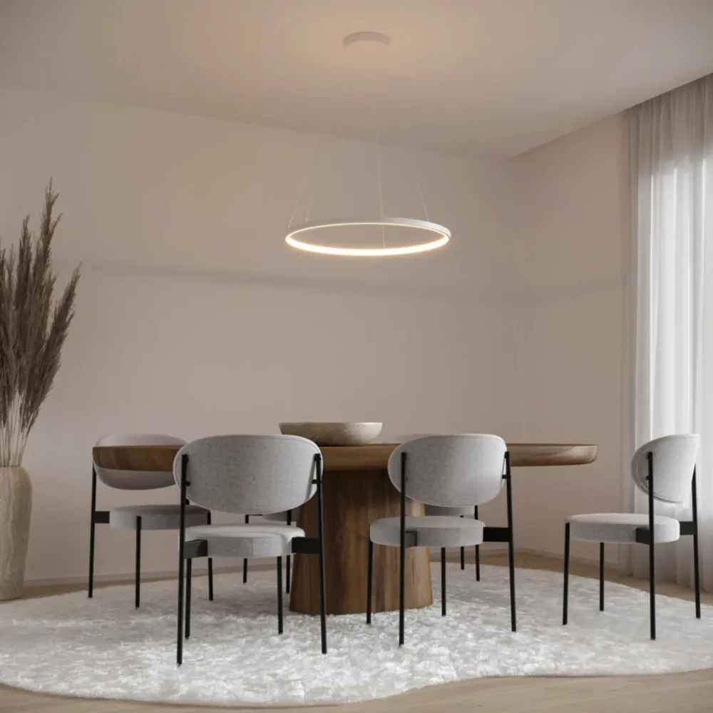 Ce luminaire suspendu circulaire en aluminium moulé sous pression combine esthétique et performance pour illuminer avec élégance tout type d’espace intérieur. Son design moderne, sublimé par une finition noir mat et un revêtement par poudre, lui confère une allure sobre et sophistiquée.